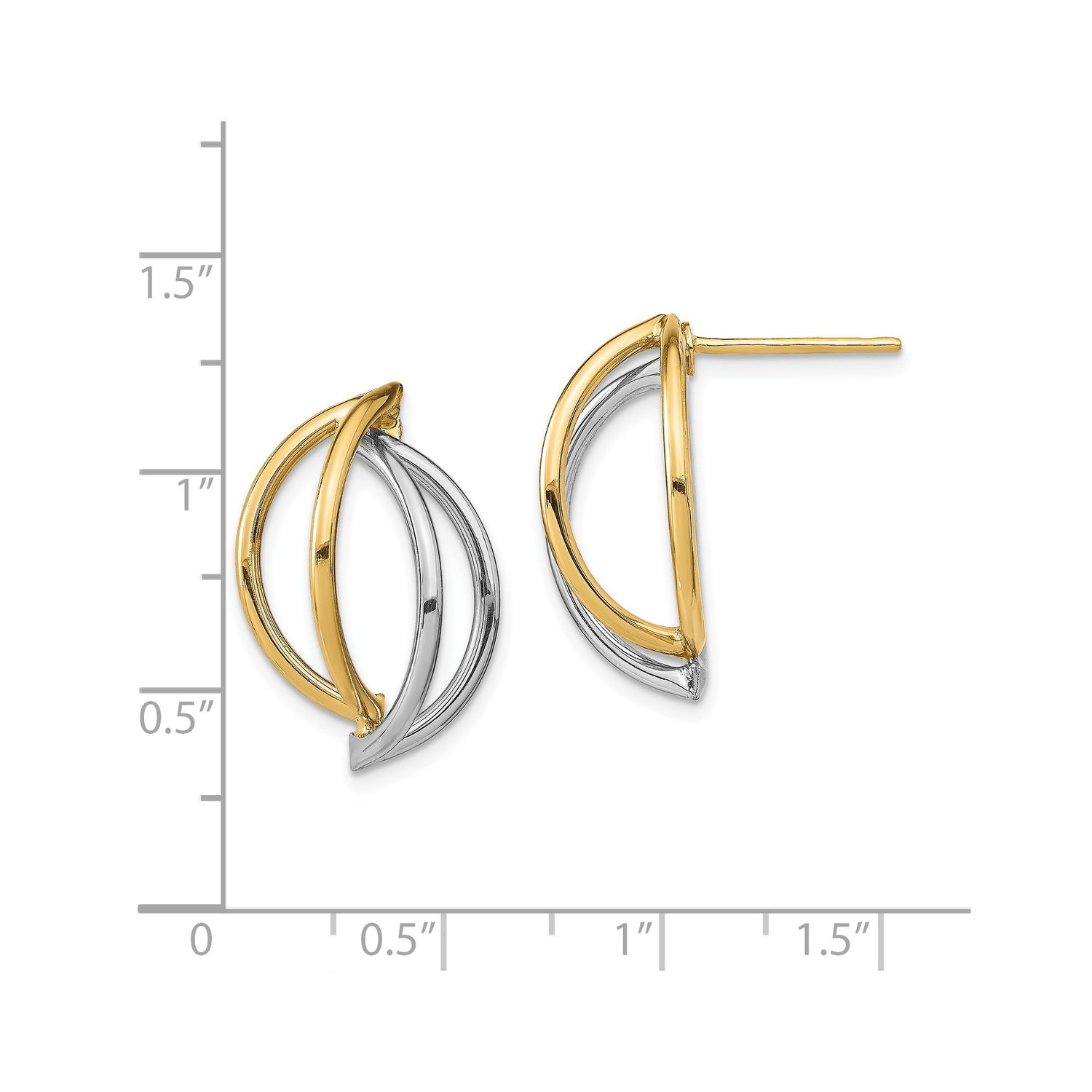 14k Yellow Gold Stud Earrings, Two-Tone Open Loop Design, Lightweight Modern Style