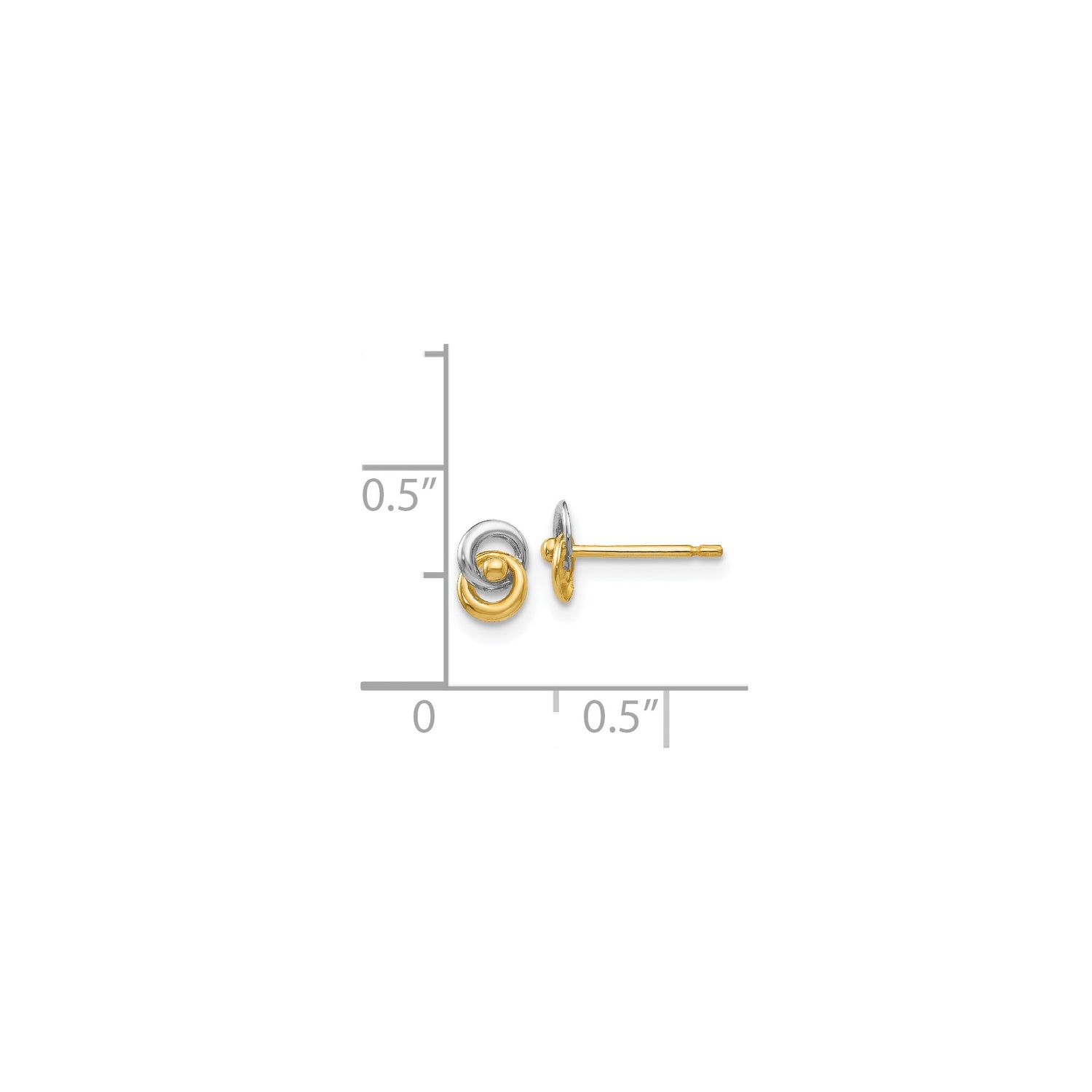 14k Yellow Gold Stud Earrings with Rhodium Double Intertwined Circle Design