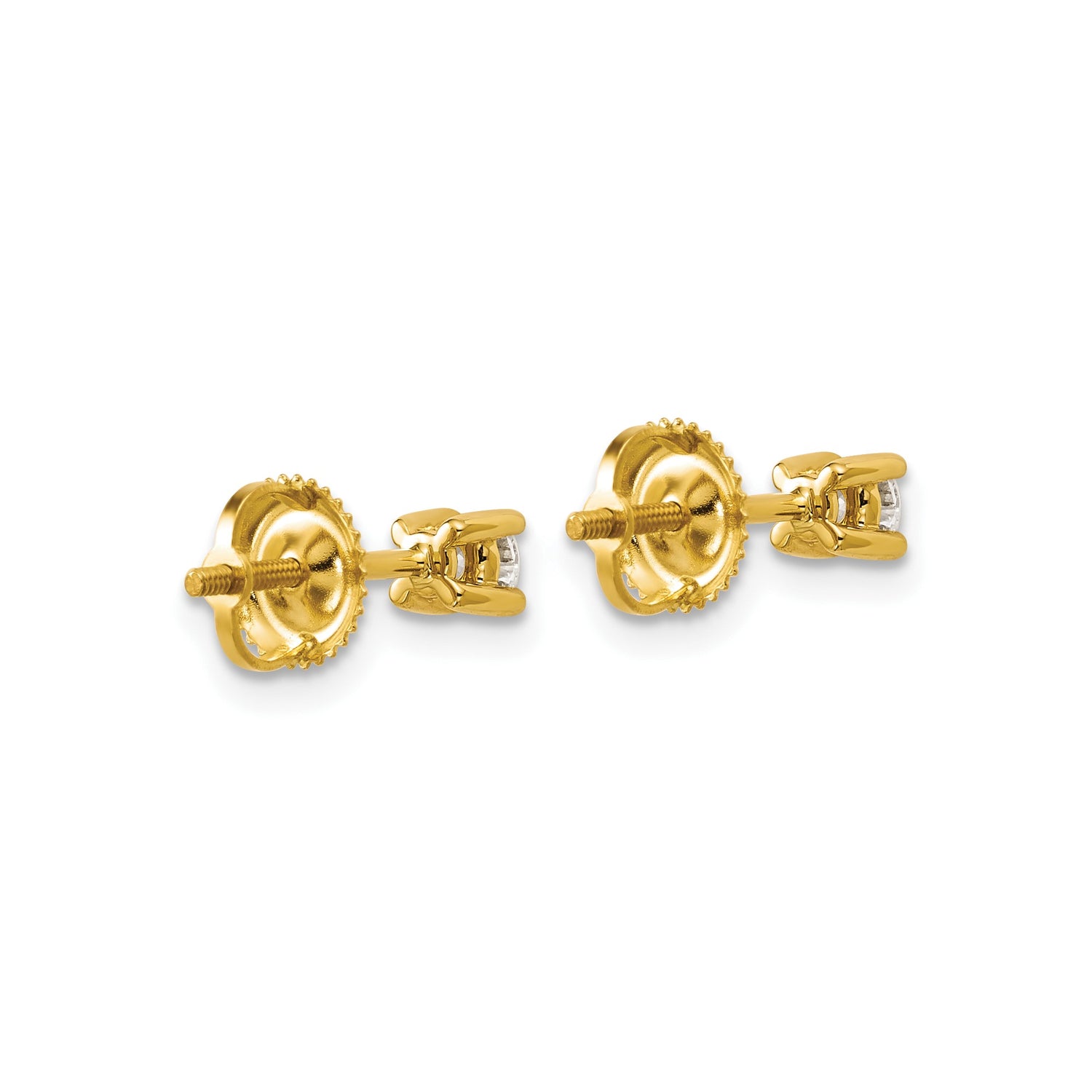 14k Yellow Gold Stud Earrings with Round Cut Clear Gemstones, Four Prong Setting, Screw Back