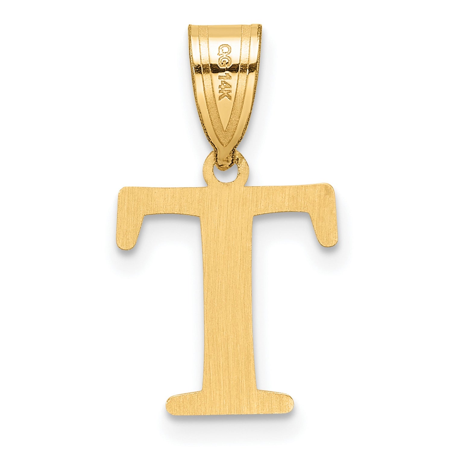 Enhance your jewelry collection with our elegant Polished Etched Letter T Initial Charm Pendant, expertly crafted in real 14k yellow gold. This exquisite piece is perfect for those looking to add a personal touch to their style or gift a loved one with a lasting keepsake.