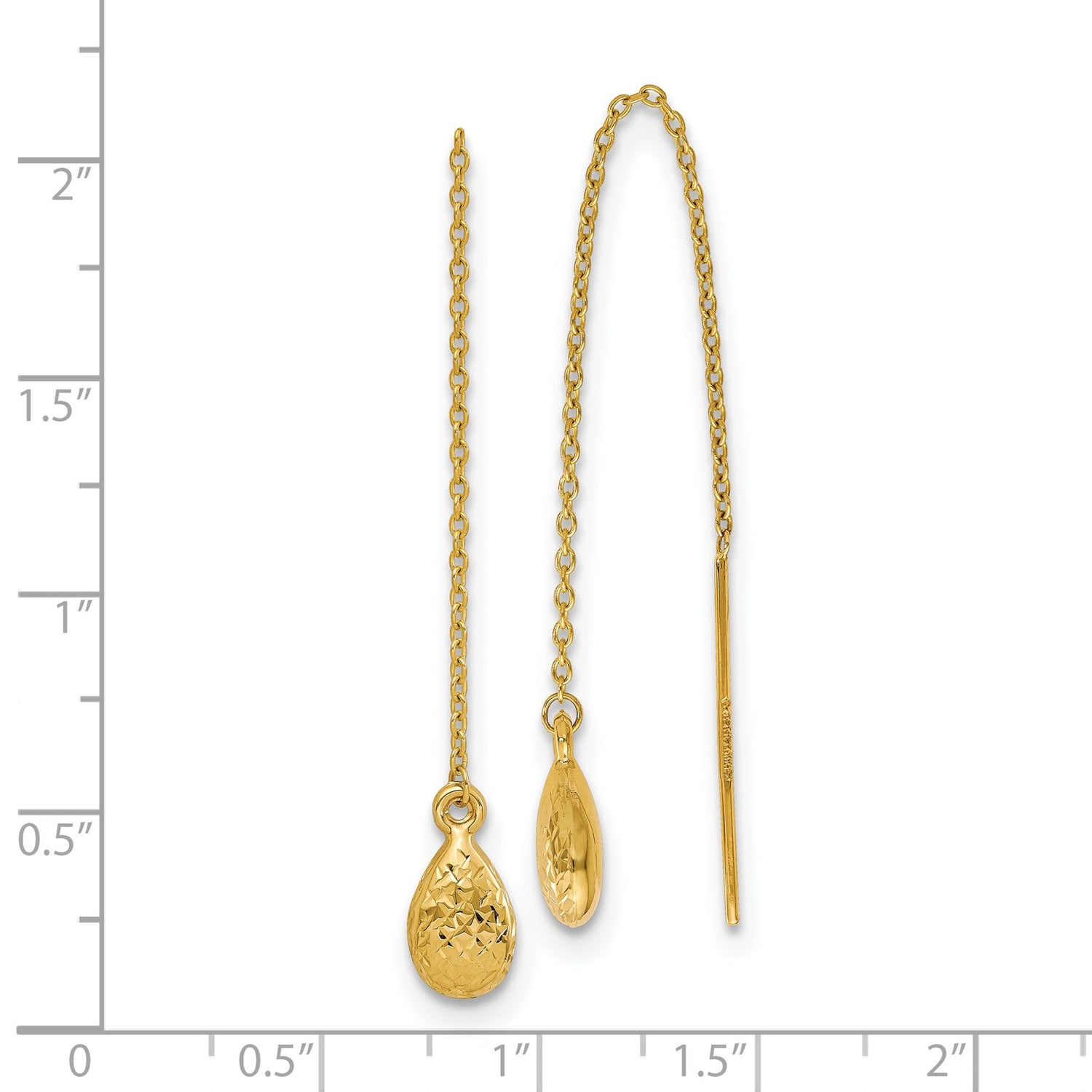 14k Yellow Gold Threader Earrings, Textured Teardrop with Diamond-Cut Finish, Minimalist Dangle Style