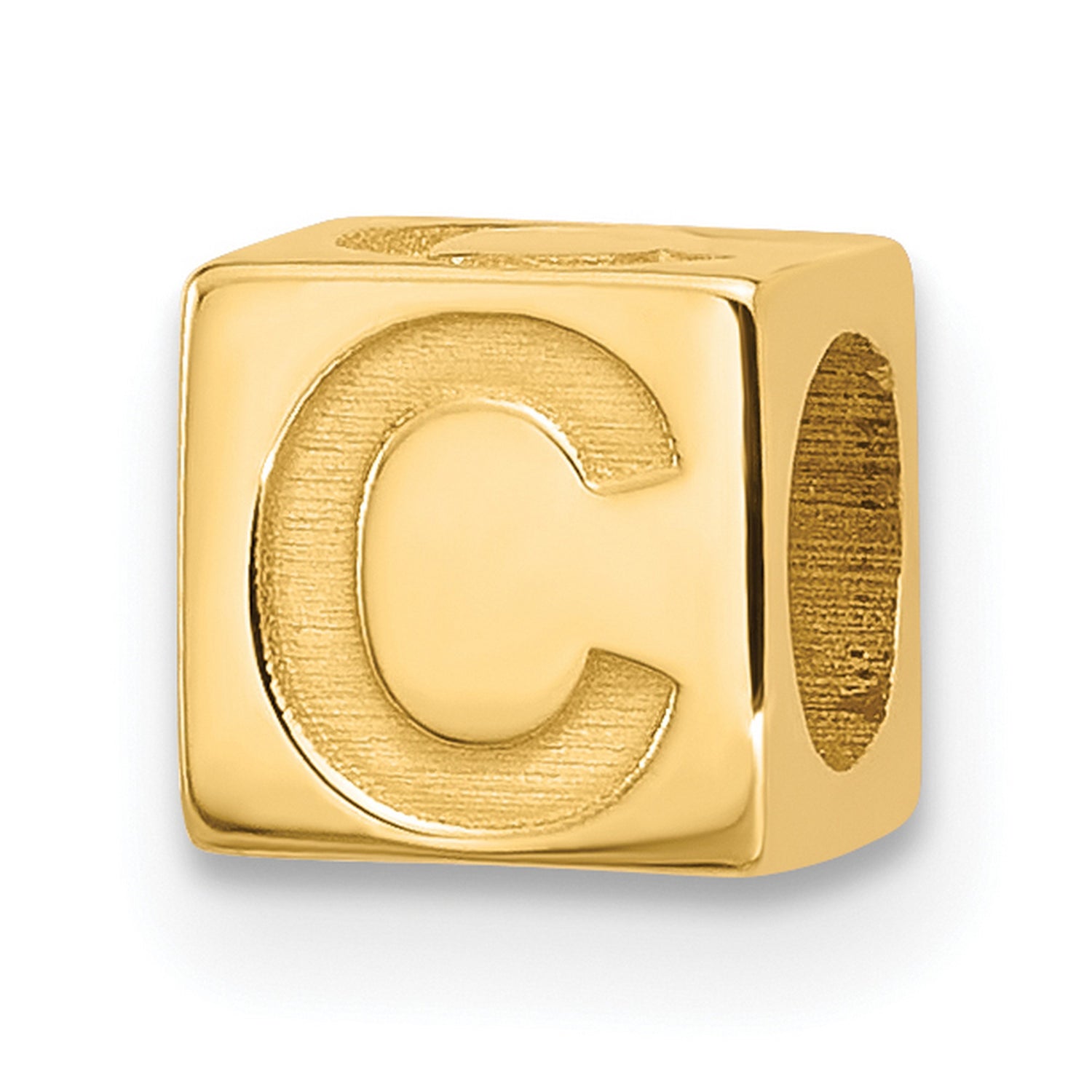 Alphabet Bead Letter C Charm Pendant in Real 14k Yellow Gold