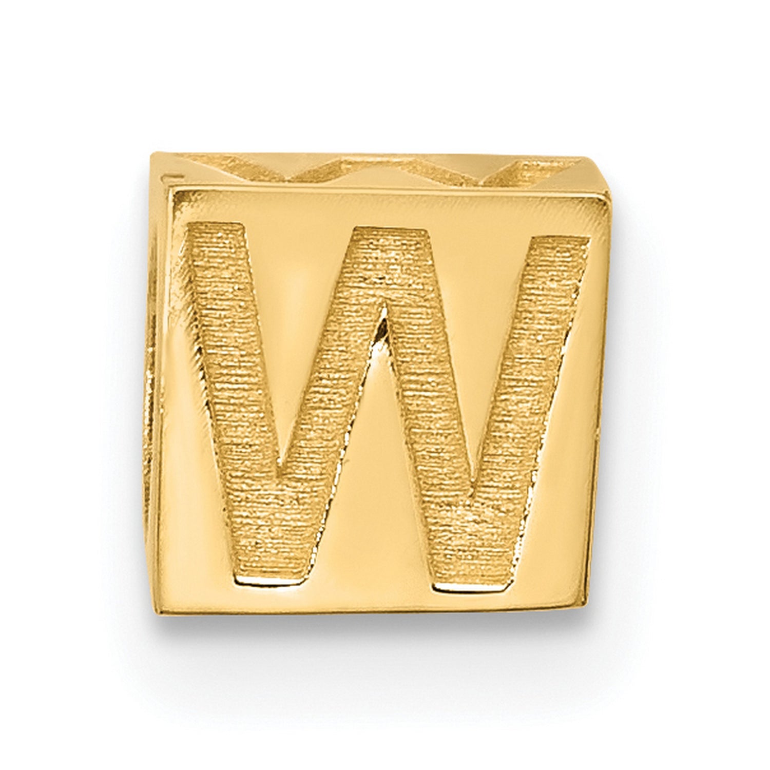 Alphabet Bead Letter W Charm Pendant in Real 14k Yellow Gold