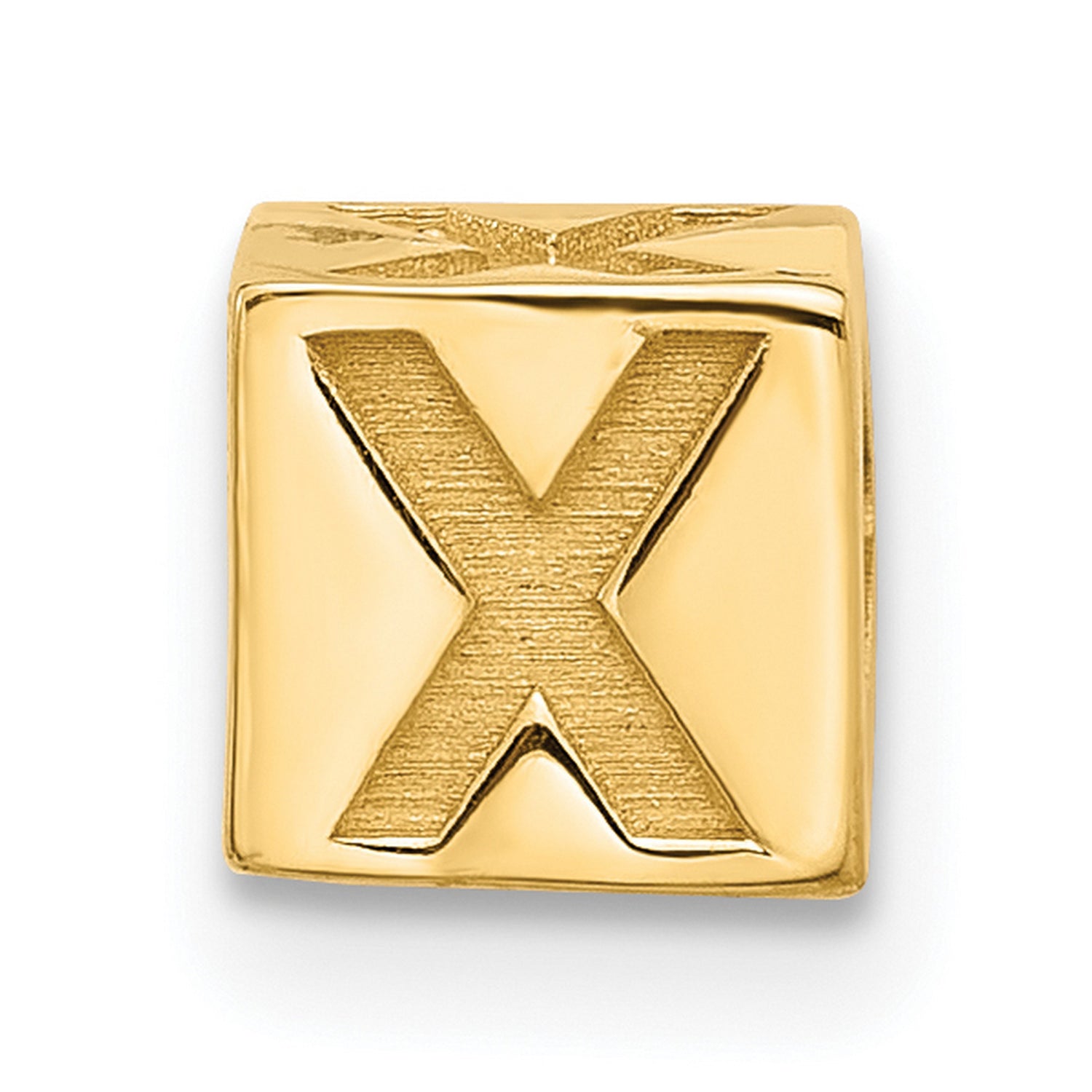Alphabet Bead Letter X Charm Pendant in Real 14k Yellow Gold
