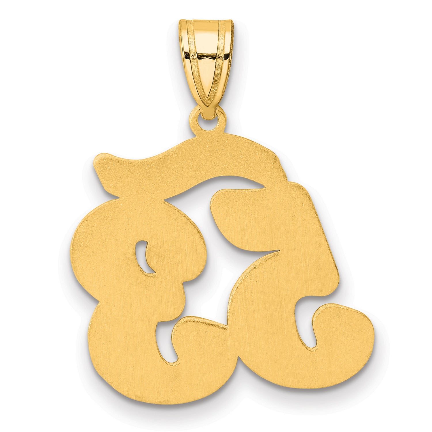 Brushed Border Script Number 53 Charm Pendant in Real 14k Yellow Gold