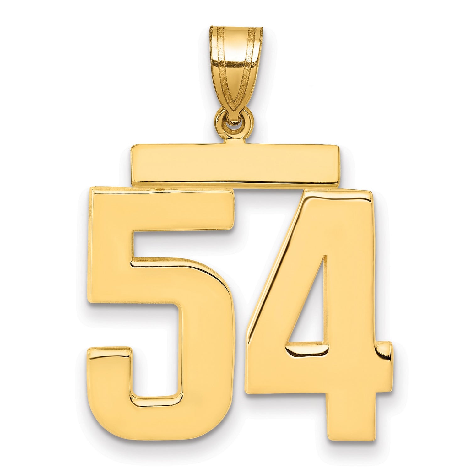 Each pendant is crafted with precision and care, ensuring that you receive a piece that is as unique as the moment it represents. Whether you're adding to your own collection or gifting it to a loved one, the Large Polished Number 54 Charm Pendant in Real 14k Yellow Gold is a timeless treasure that exudes both style and sentiment.