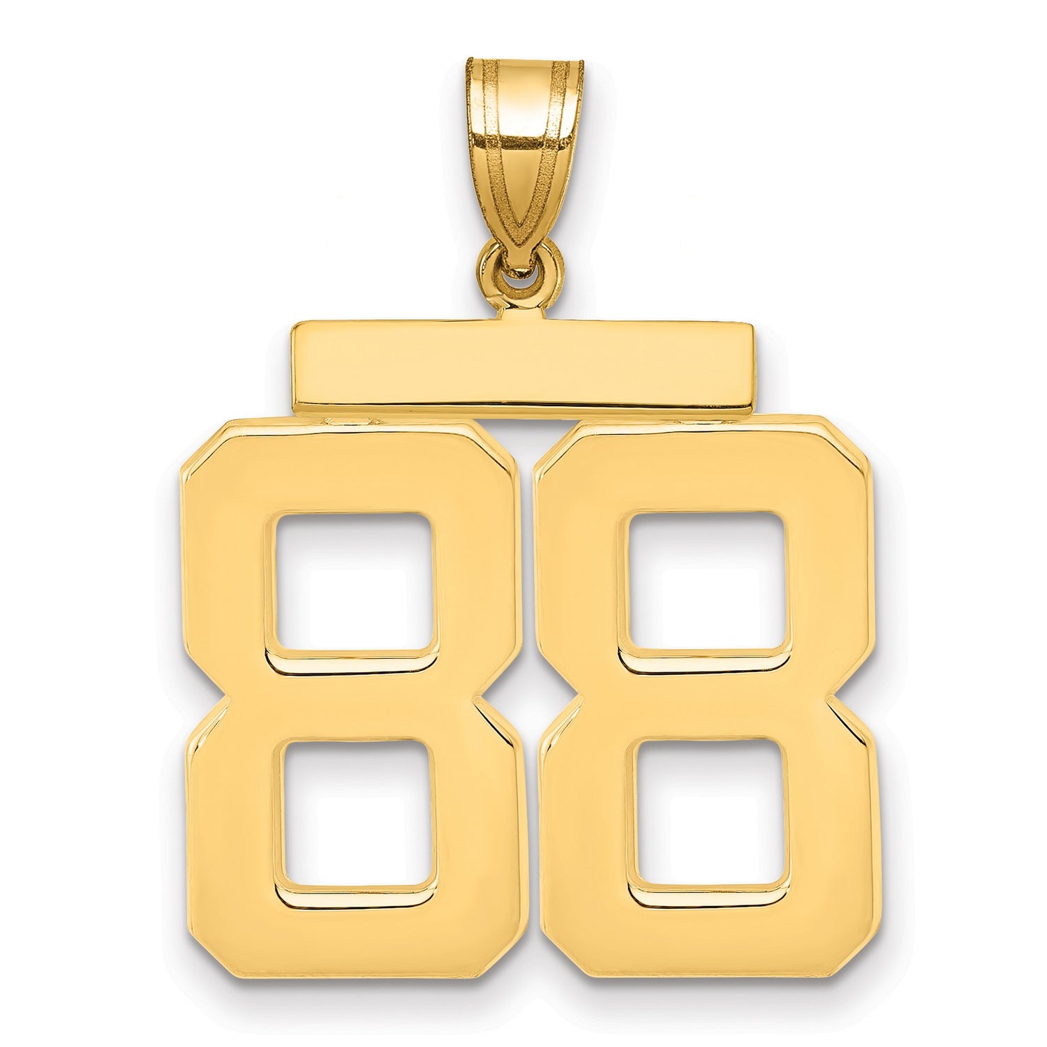 Enhance your jewelry collection with our Large Polished Number 88 Charm Pendant in Real 14k Yellow Gold today and enjoy a piece that's as meaningful as it is beautiful.
