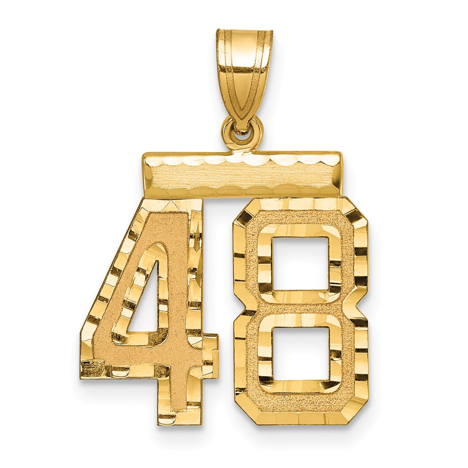 Medium Diamond-cut Number 48 Charm Pendant in Real 14k Yellow Gold