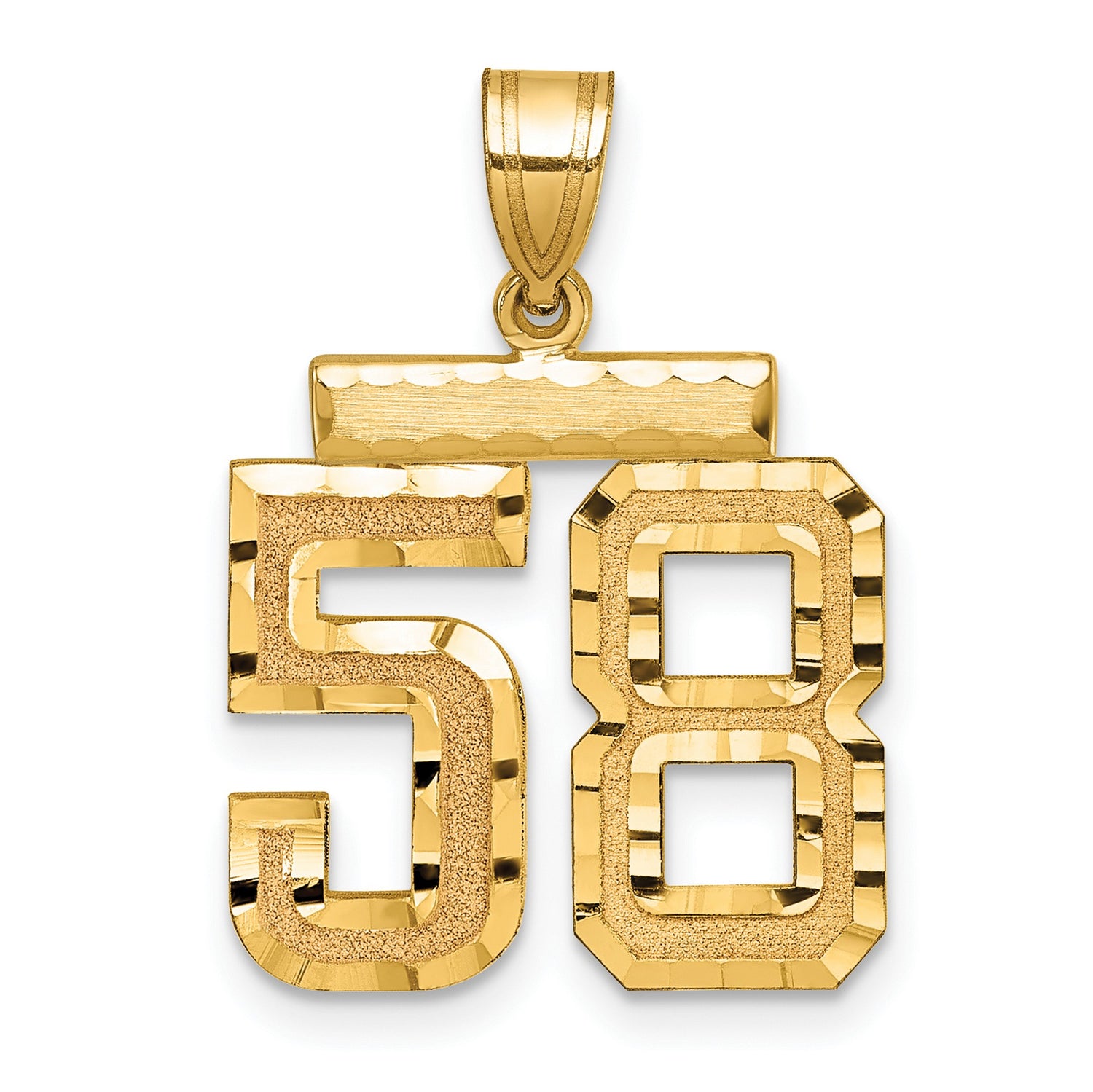 Medium Diamond-cut Number 58 Charm Pendant in Real 14k Yellow Gold