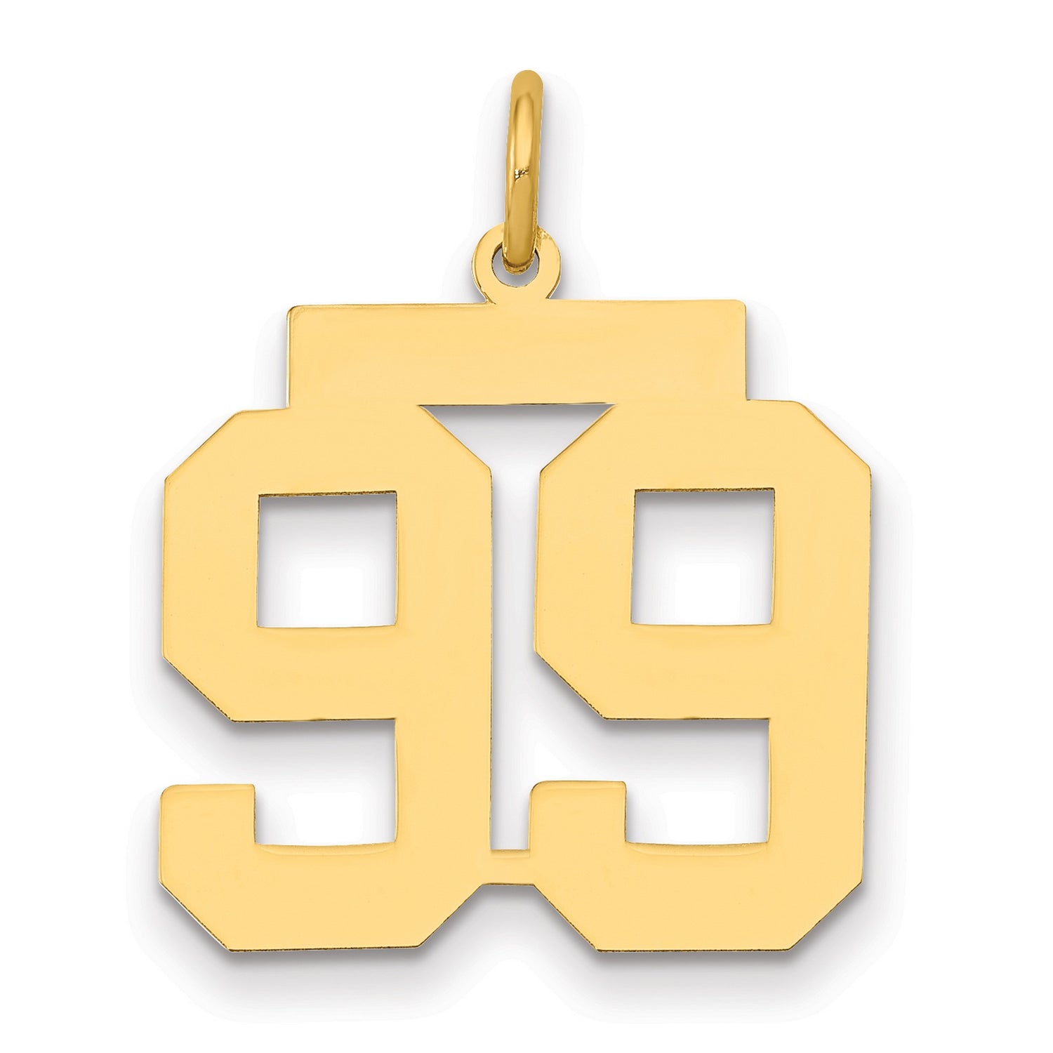Medium Polished Number 99 Charm Pendant in Real 14k Yellow Gold