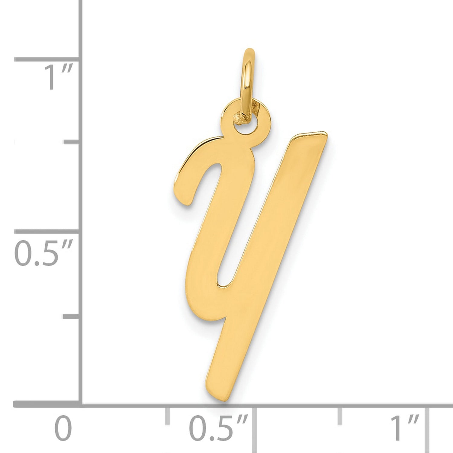 Medium Script Letter Y Initial Charm Pendant in Real 10k Yellow Gold