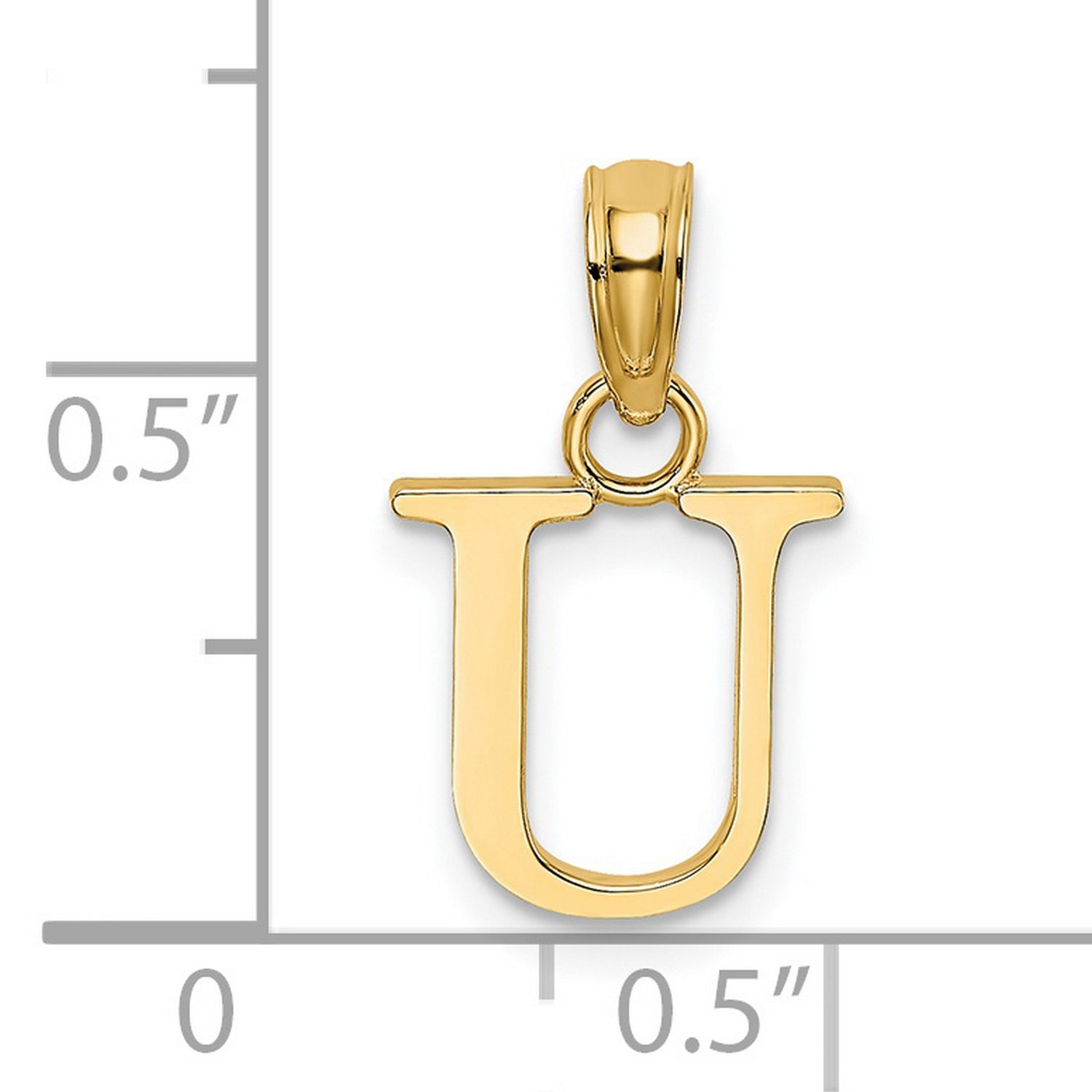 Polished Block Letter U Initial Charm Pendant in Real 14k Yellow Gold