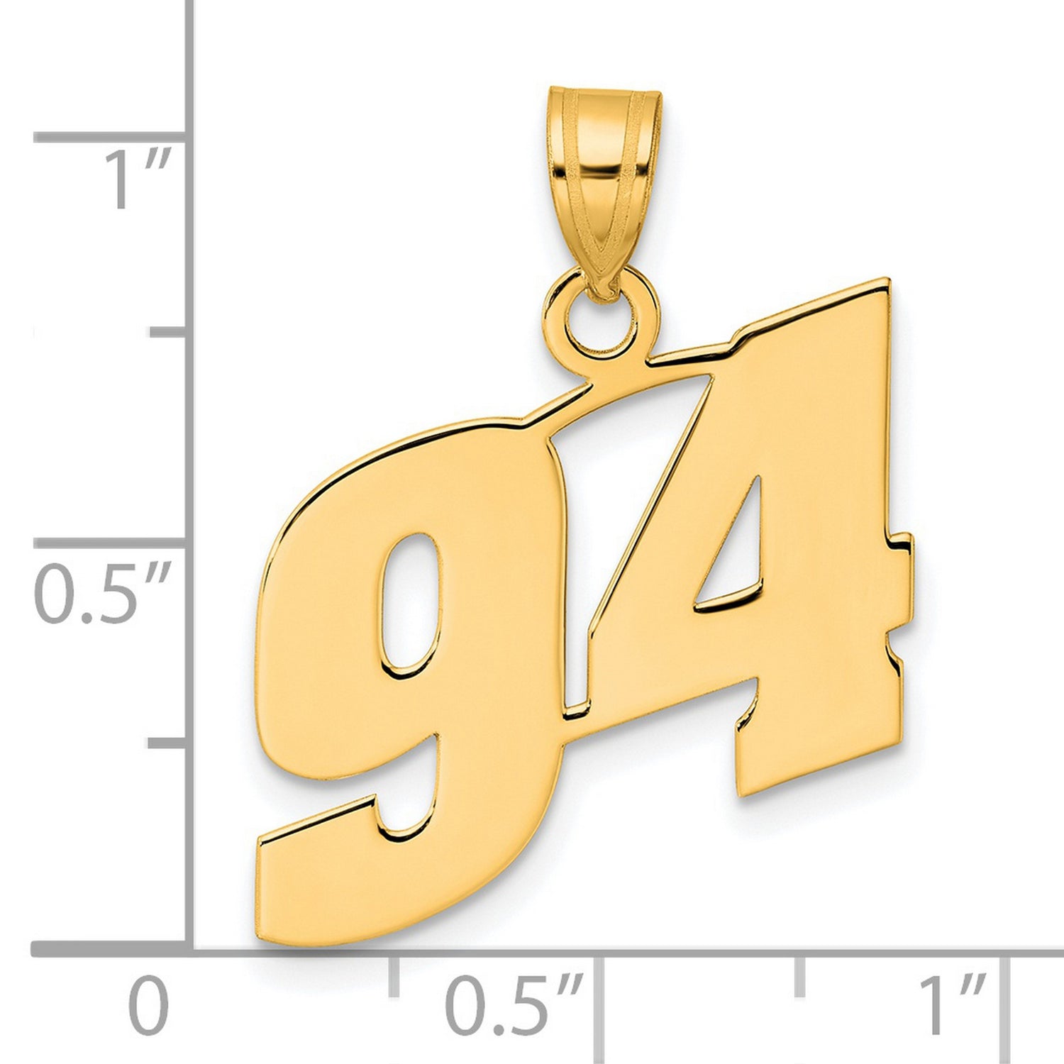 Polished Block Number 94 Charm Pendant in Real 14k Yellow Gold