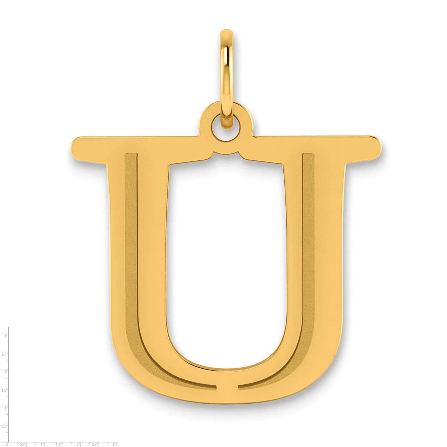 Polished Etched Letter U Initial Charm Pendant in Real 10k Yellow Gold