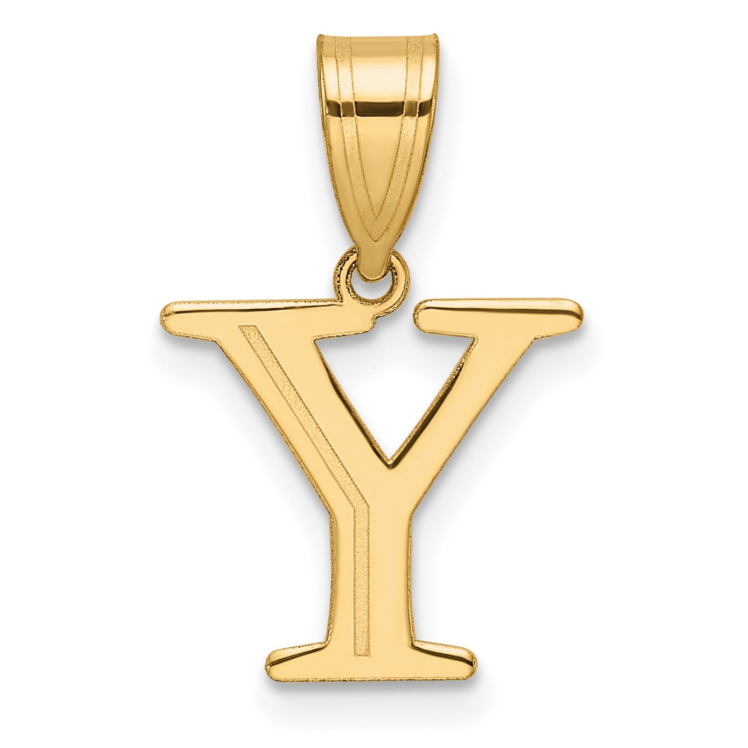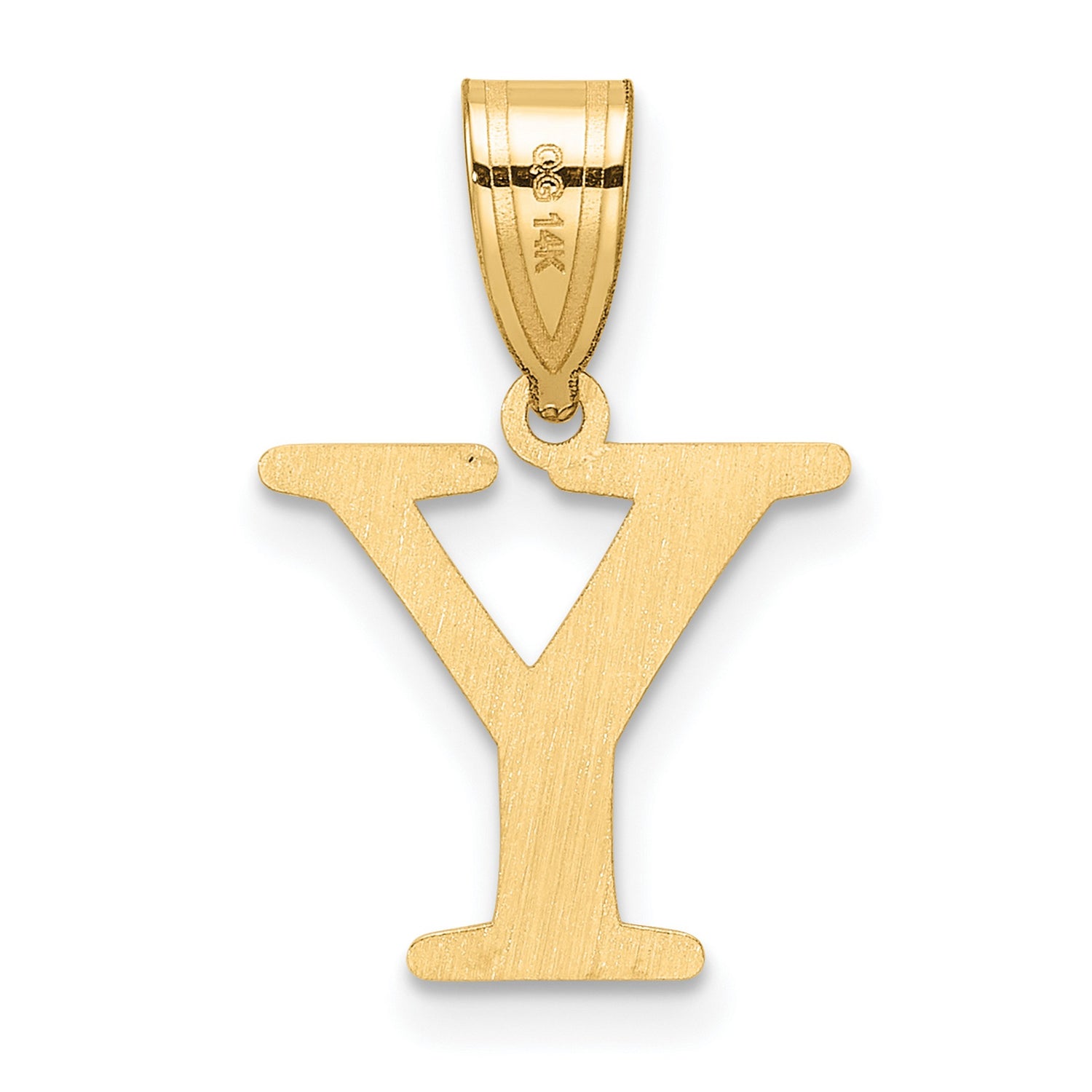 Polished Etched Letter Y Initial Charm Pendant in Real 14k Yellow Gold