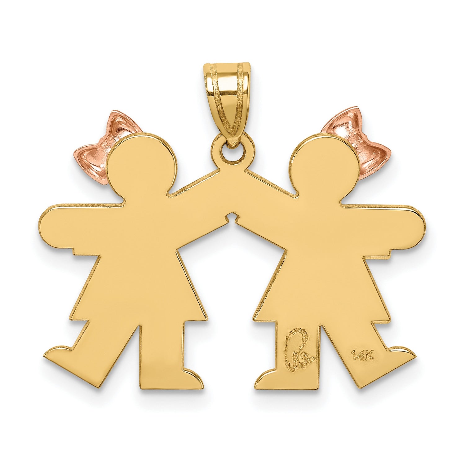 Small Double Girls Engravable Charm Pendant in Real 14k Multi-Tone Gold
