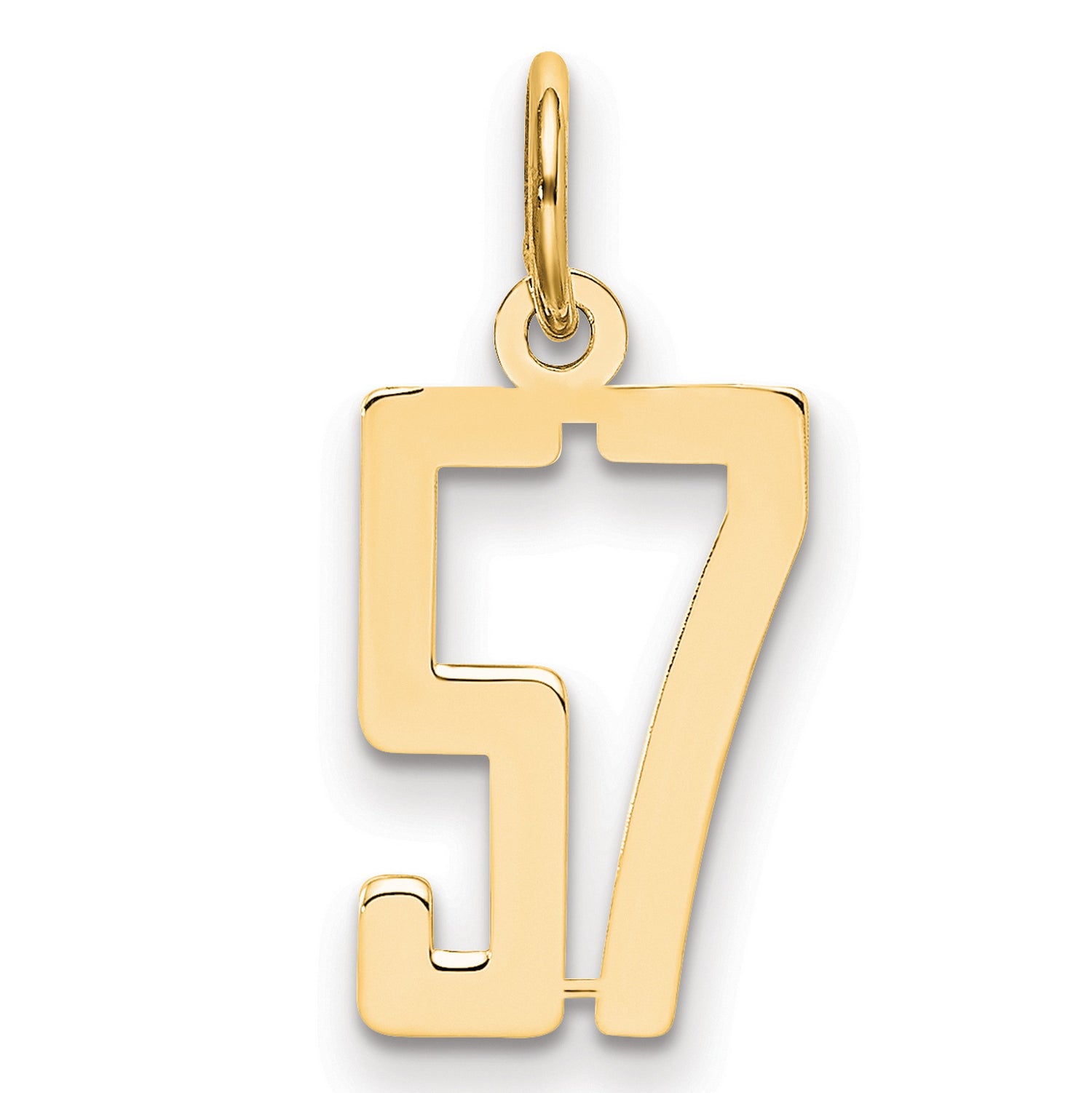 Small Elongated Number 57 Charm Pendant in Real 14k Yellow Gold