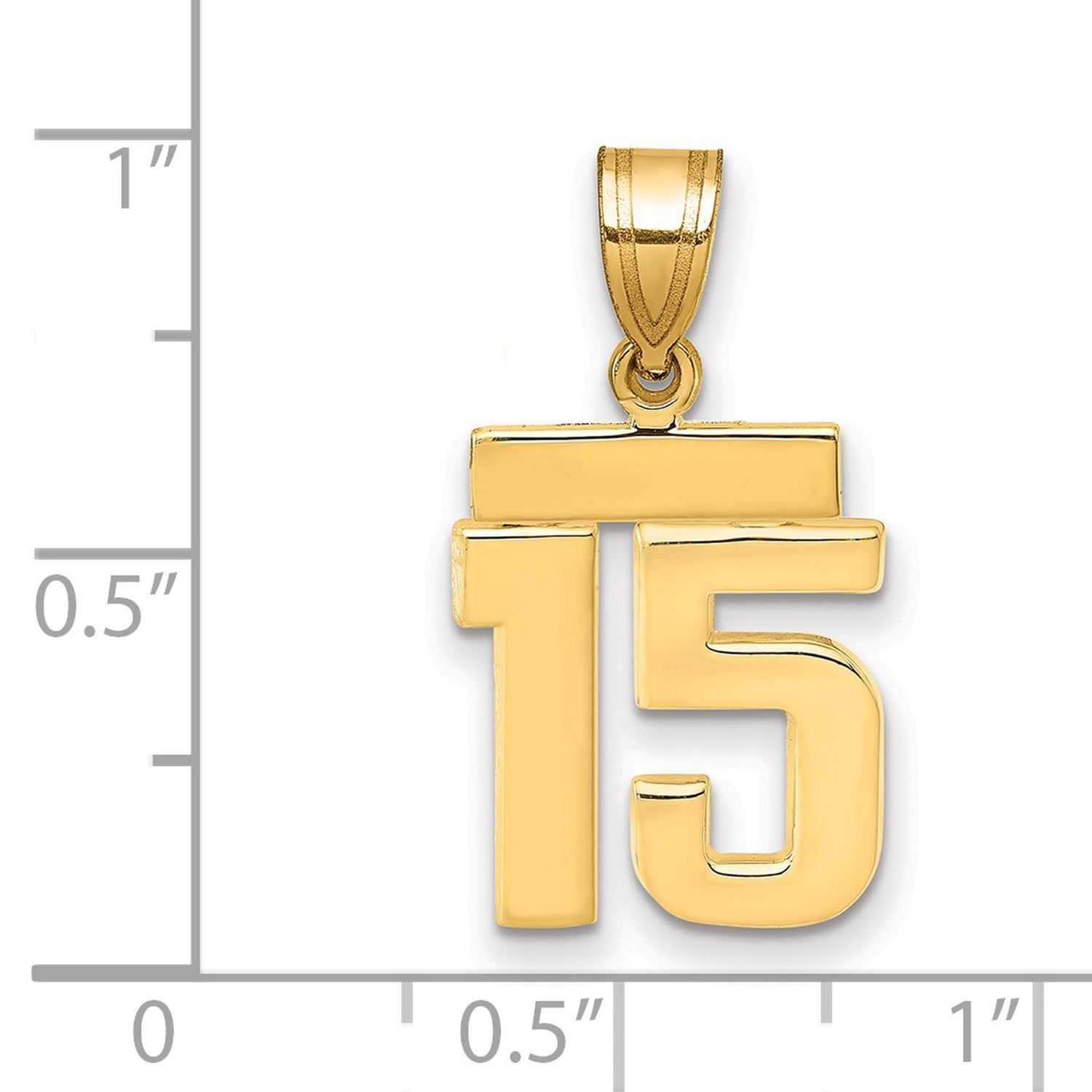 Small Polished Number 15 Charm Pendant in Real 14k Yellow Gold