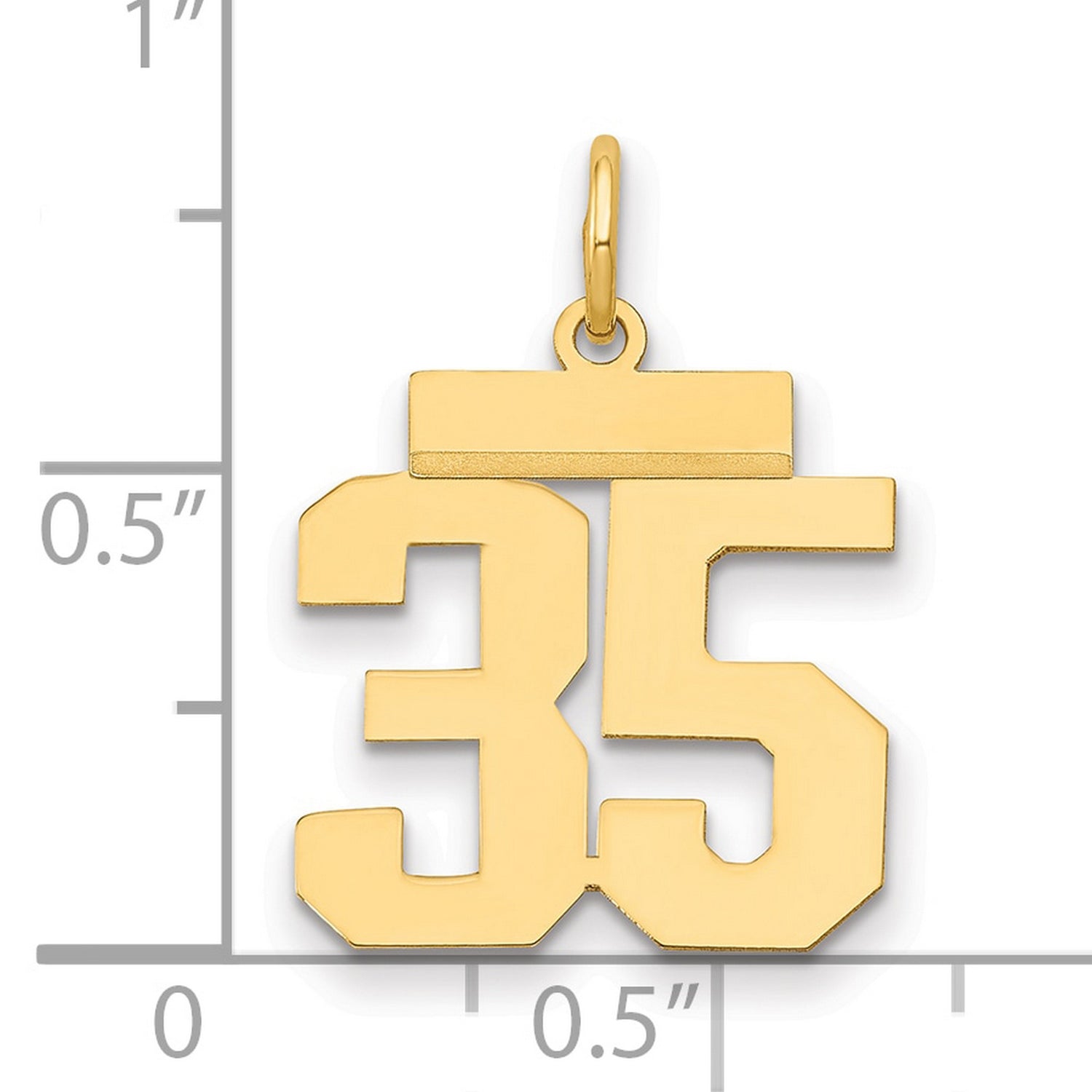 Small Polished Number 35 Charm Pendant in Real 14k Yellow Gold