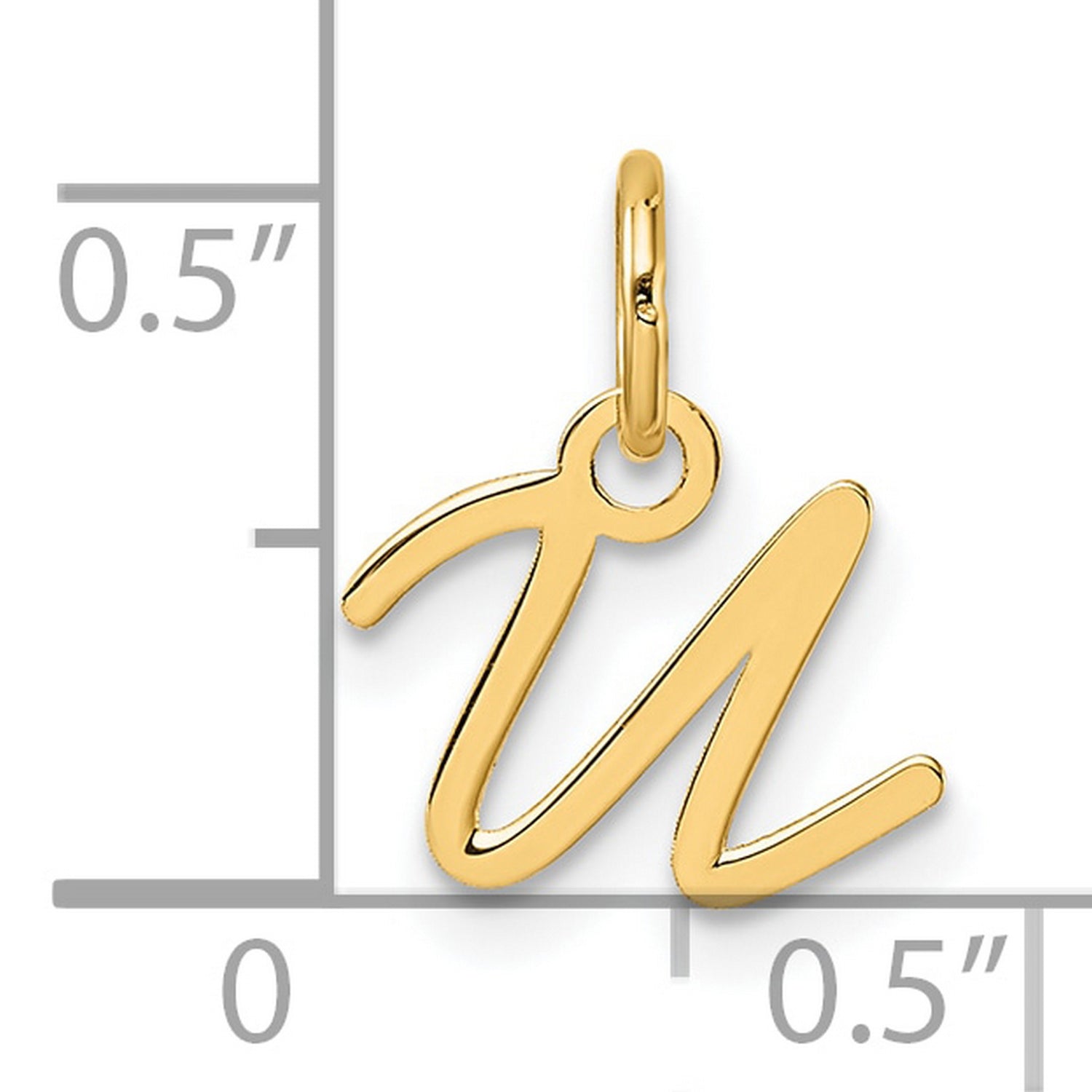 Uppercase Letter U Initial Charm Pendant in Real 14k Yellow Gold