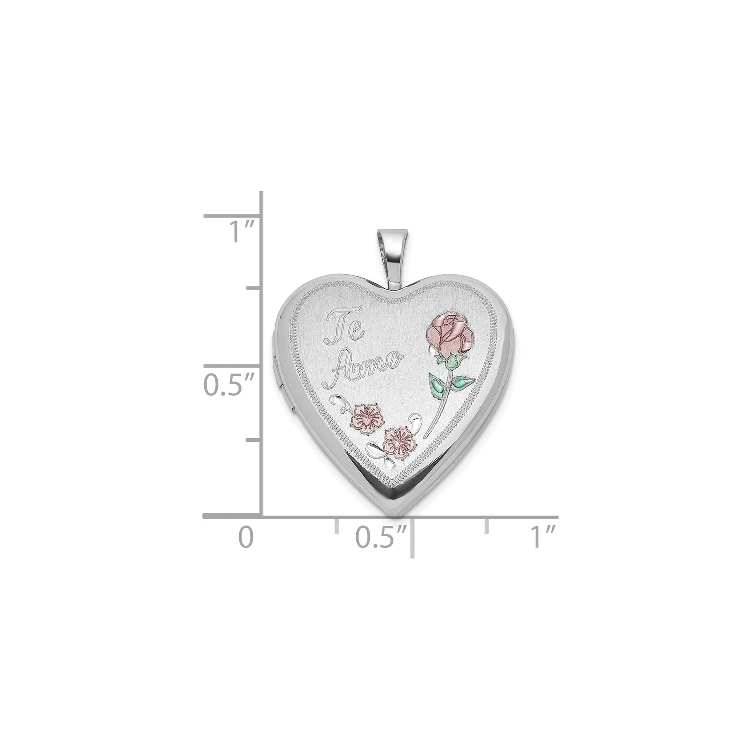 Sterling Silver Heart Locket Pendant with Te Amo and Floral Rose Accents for Women