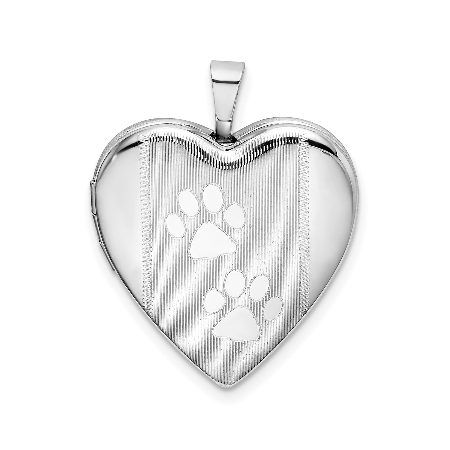 Sterling Silver Heart Locket with Pawprints, Pet Memorial Pendant for Women