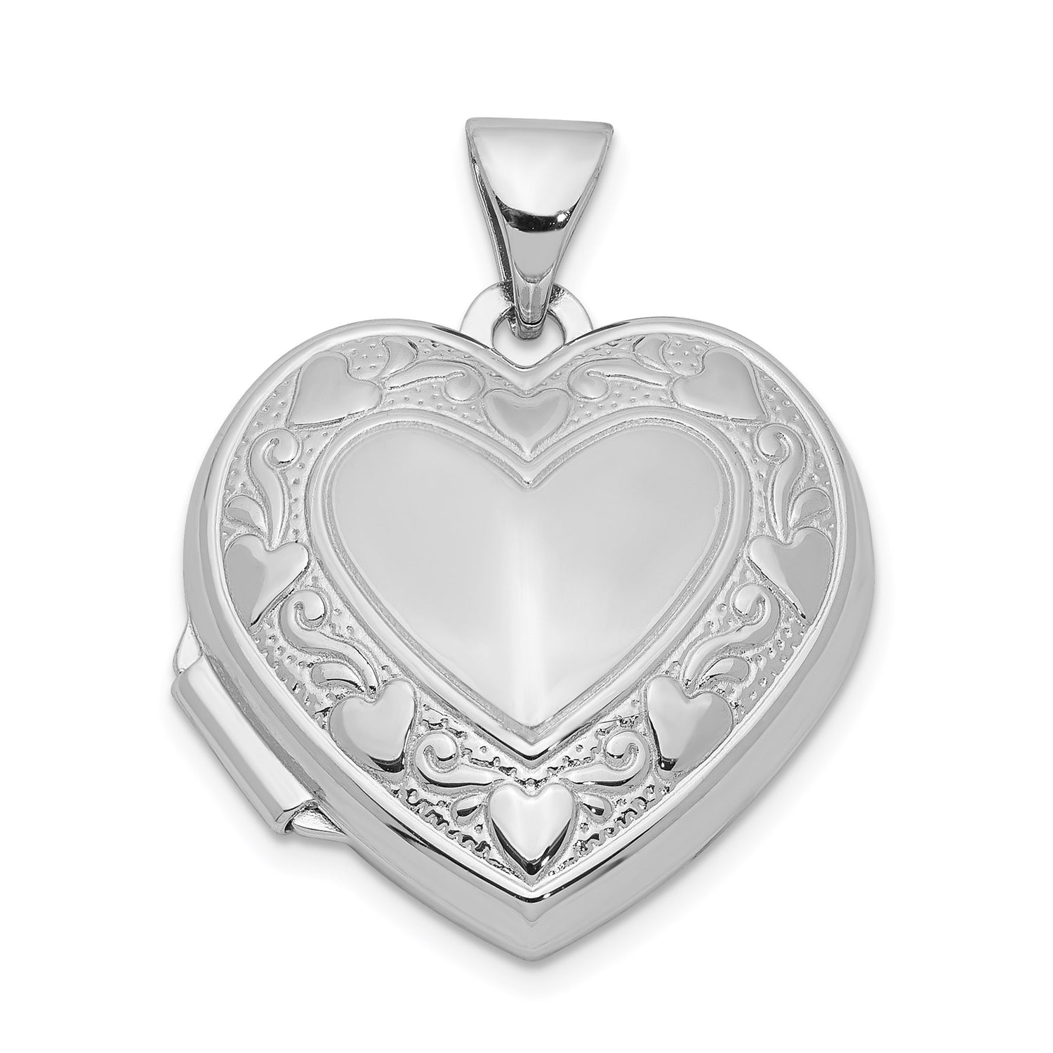Sterling Silver Heart Shaped Locket Pendant with Scrollwork for Women