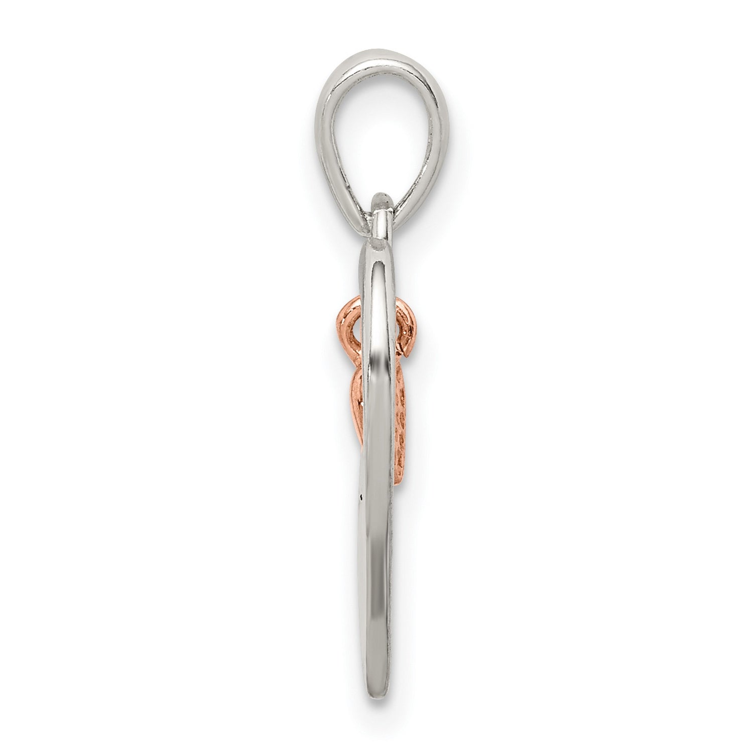 Sterling Silver Heart Pendant with Love You More Engraving, Rose Gold Accent, Romantic Jewelry