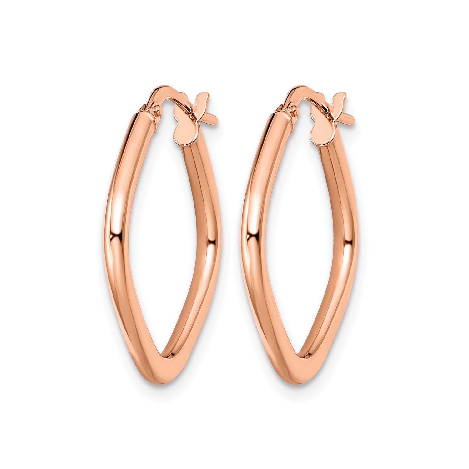 10k Rose Gold Twisted Square Hoop Earrings, Minimalist Modern Design for Women