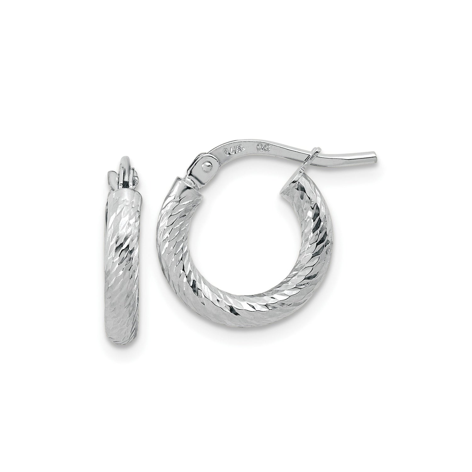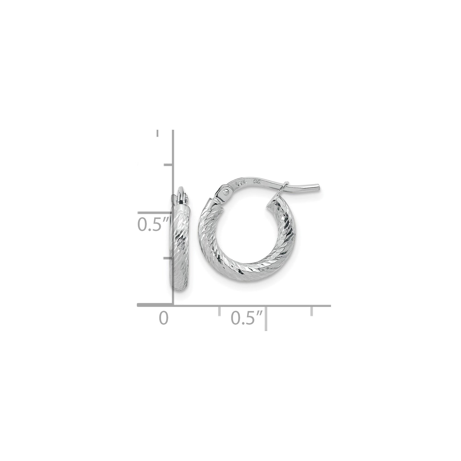 10k White Gold Hoop Earrings, Diamond Cut Textured Finish, Lightweight Polished Hoops
