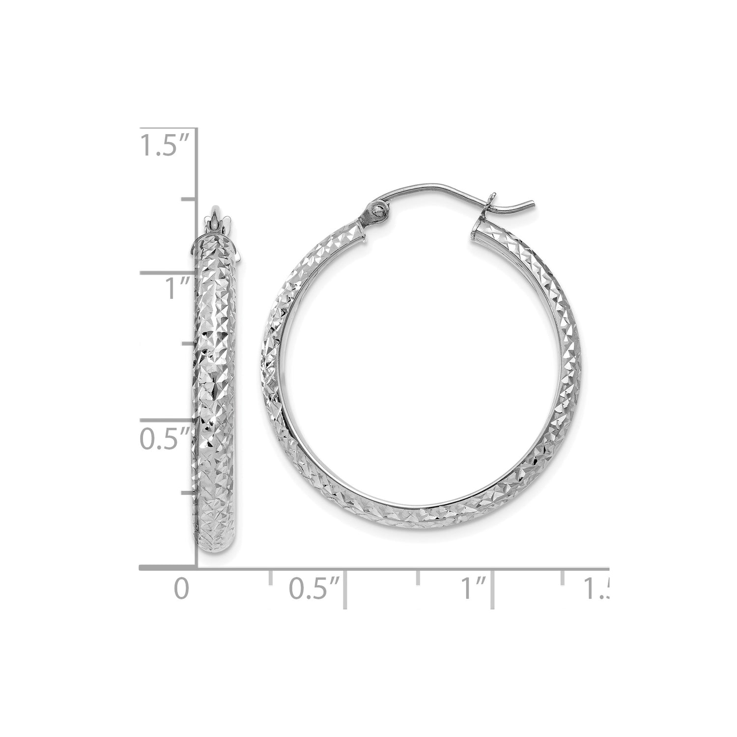 10k White Gold Hoop Earrings, Diamond Cut Textured High-Shine Finish, Classic Round Design