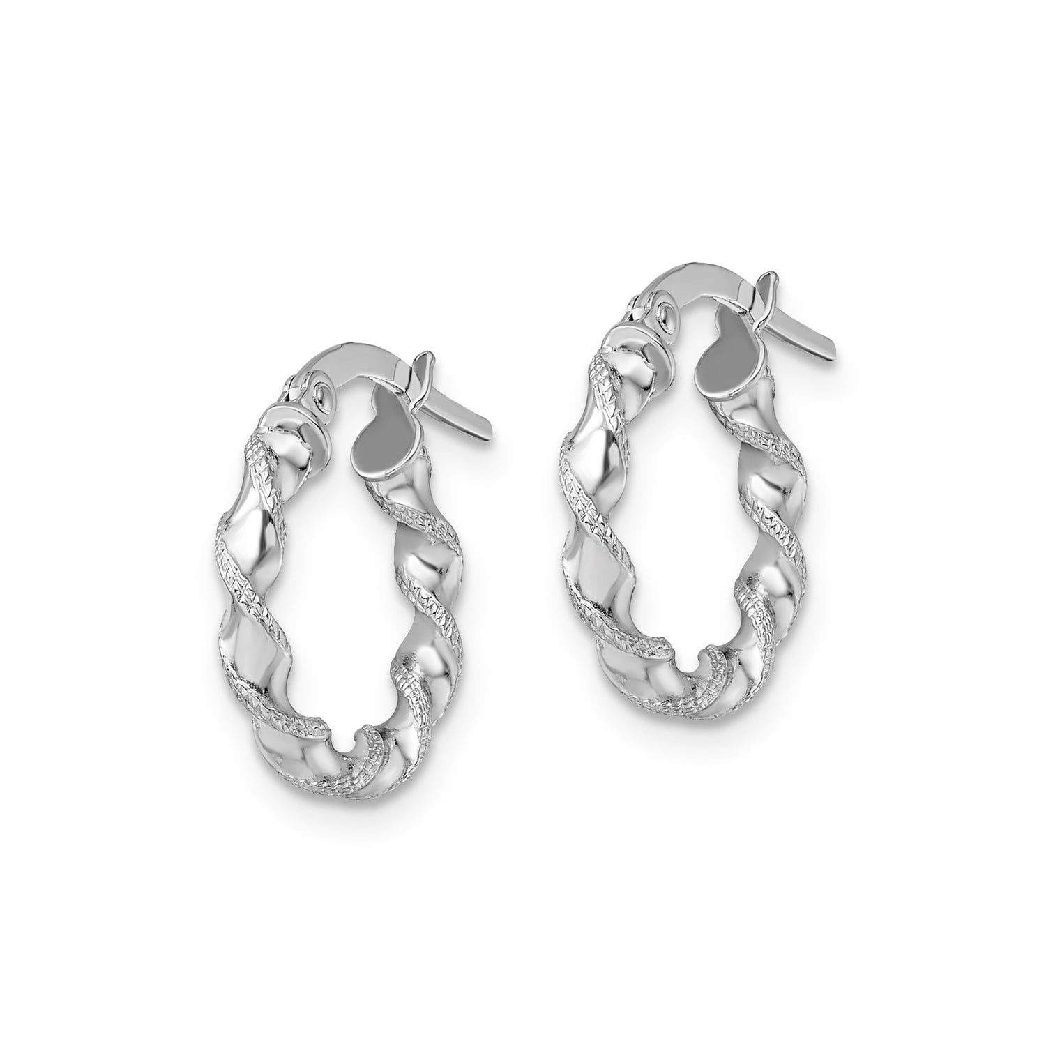 10k White Gold Hoop Earrings with Twisted Rope Design, Lightweight and Polished Style