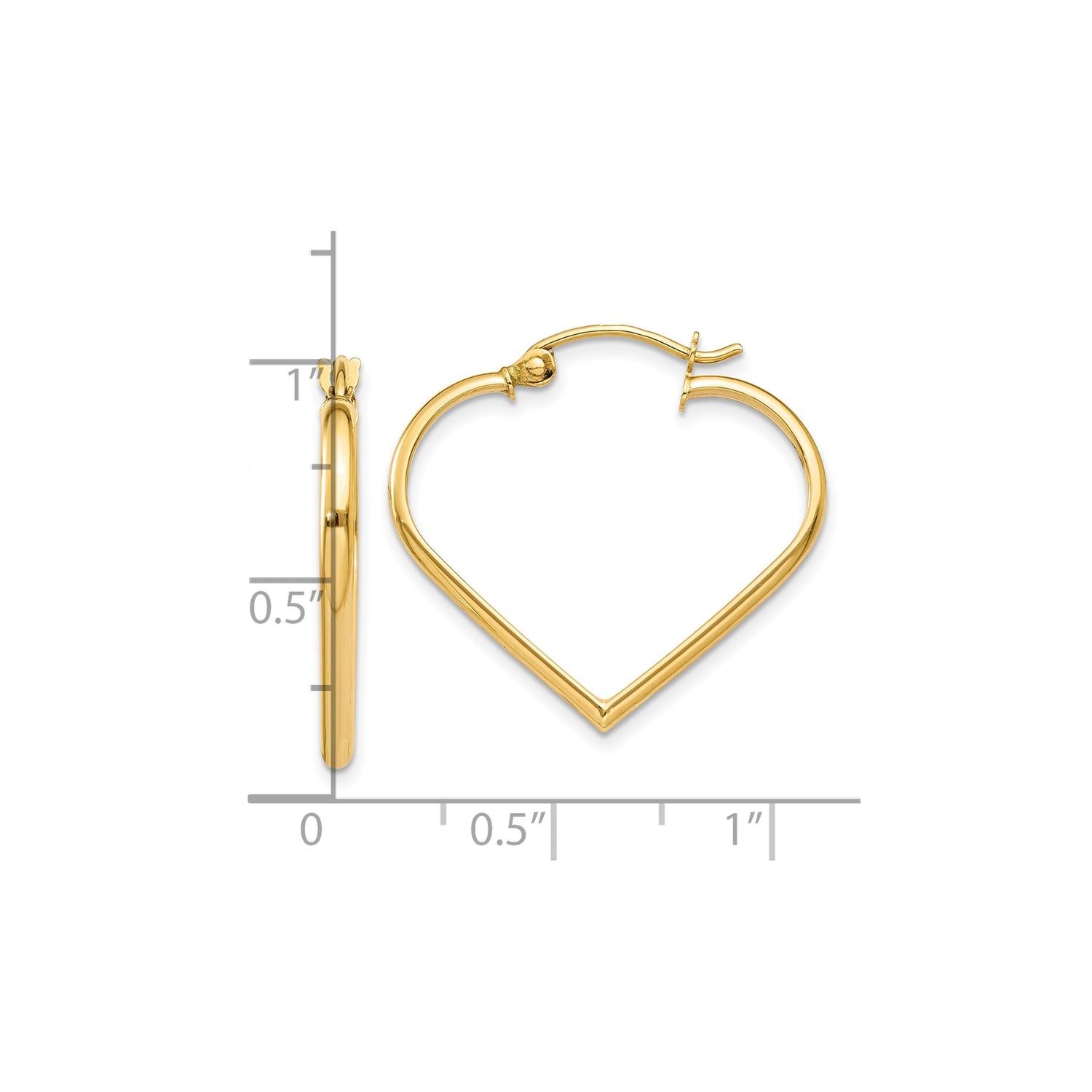10k Yellow Gold Heart Shaped Hoop Earrings, Polished Finish, Lightweight Minimalist Style