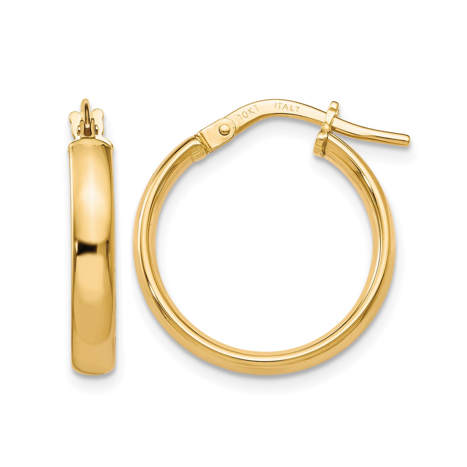 10k Yellow Gold Hoop Earrings, Polished Round Italian Design, Lightweight Classic Style for Women