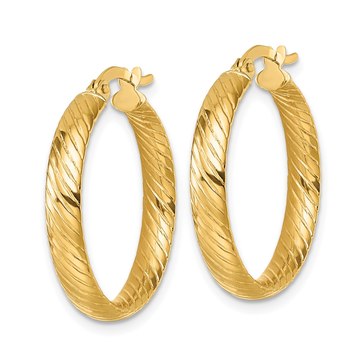 10k Yellow Gold Hoop Earrings with Polished Twisted Design and Textured Finish