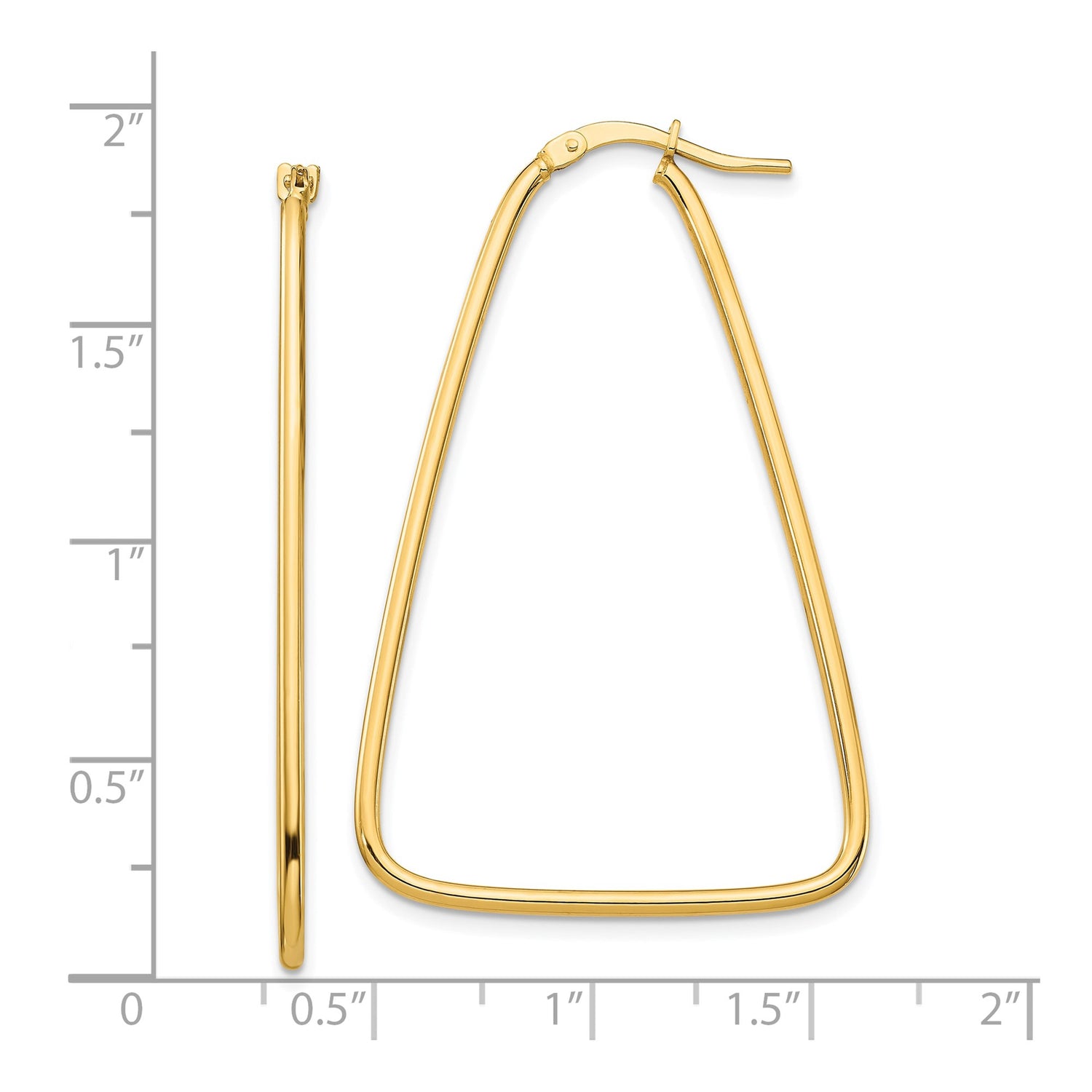 10k Yellow Gold Hoop Earrings with Tapered Triangle Design, Sleek Polished Minimalist Style