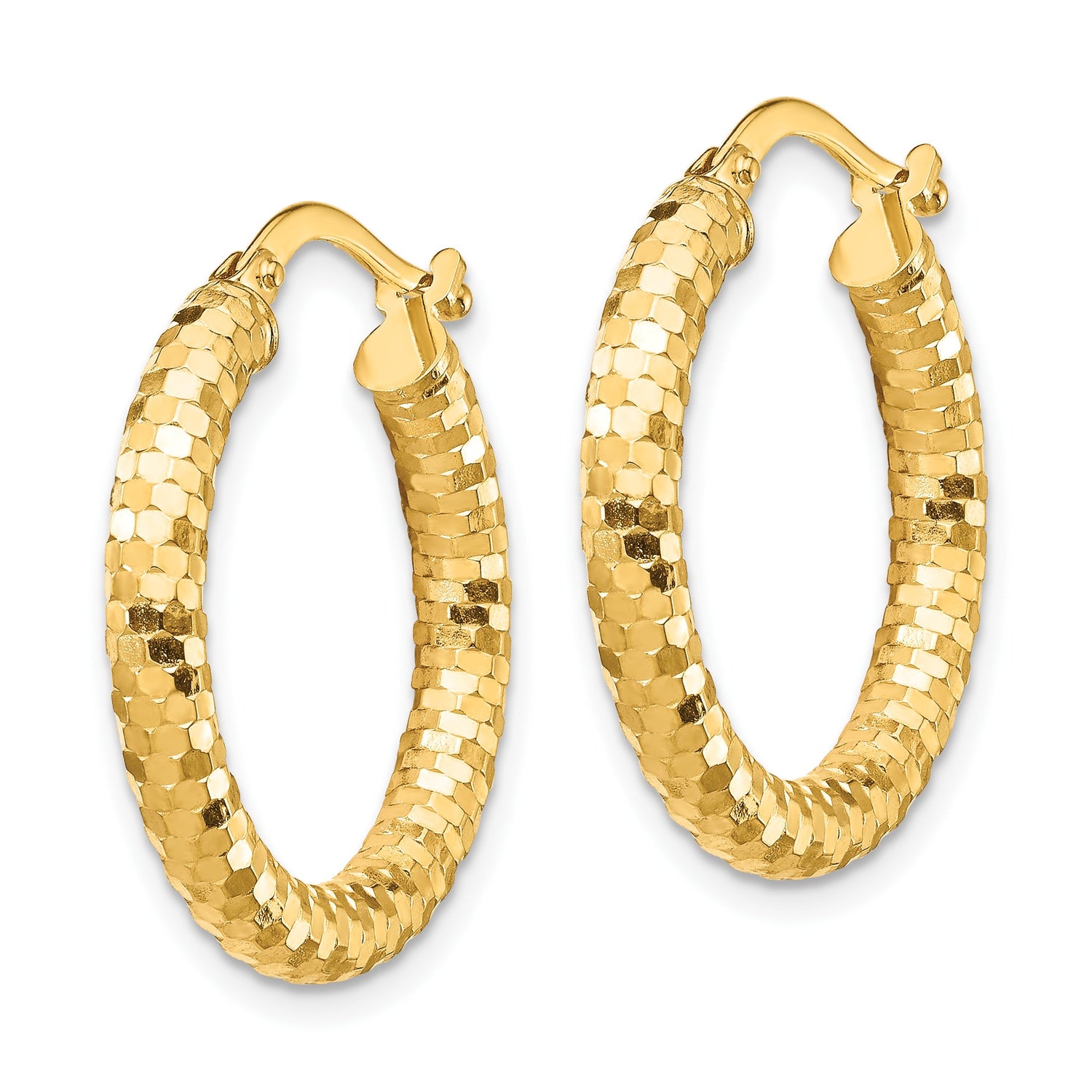 With medium textured gold hoops like these, it's easy to express your signature style while enjoying the brilliance of diamond cut gold hoops. Whether you're seeking ladies earrings that offer understated charm or gold fashion hoops with lasting radiance, these versatile gold hoop earrings are designed to impress.