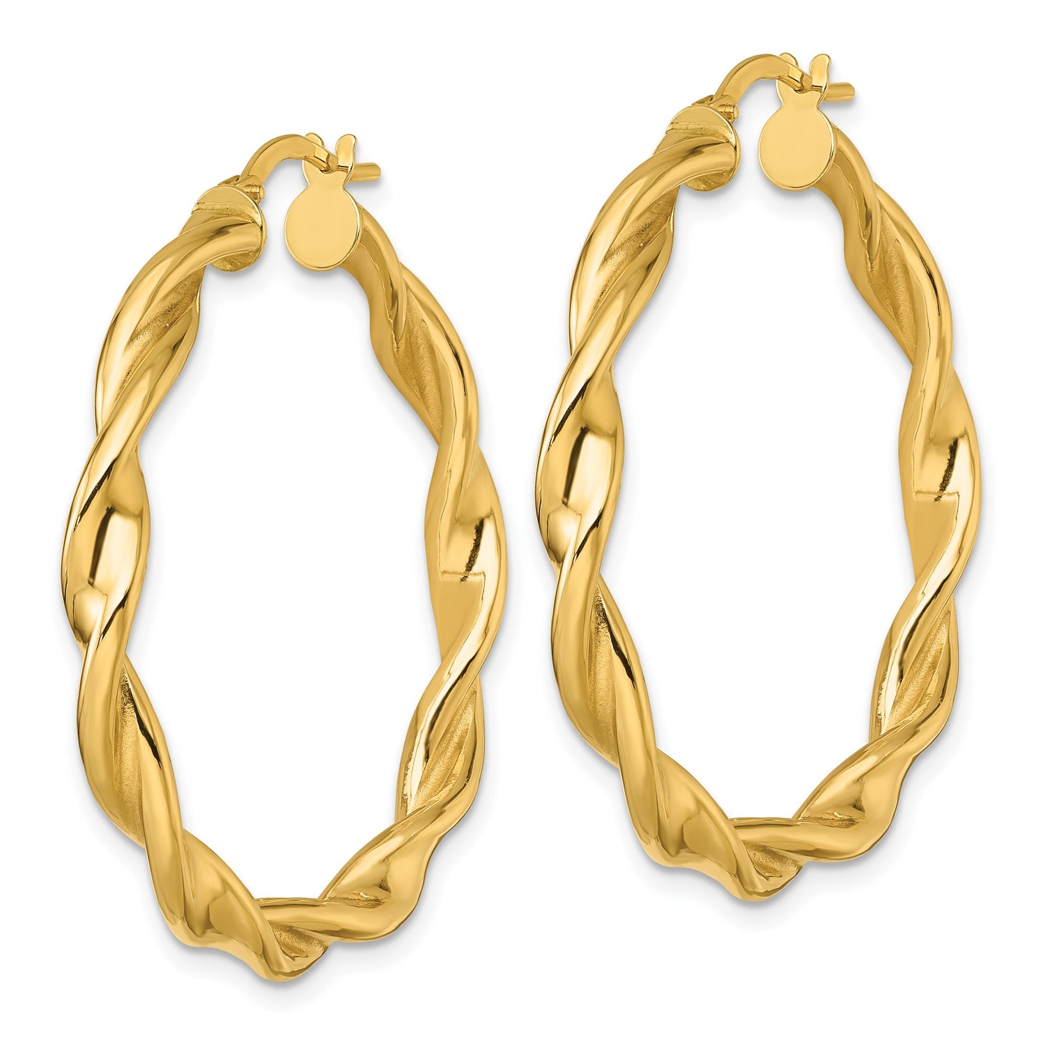 10k Yellow Gold Hoop Earrings with Twisted Rope Design and Polished Finish
