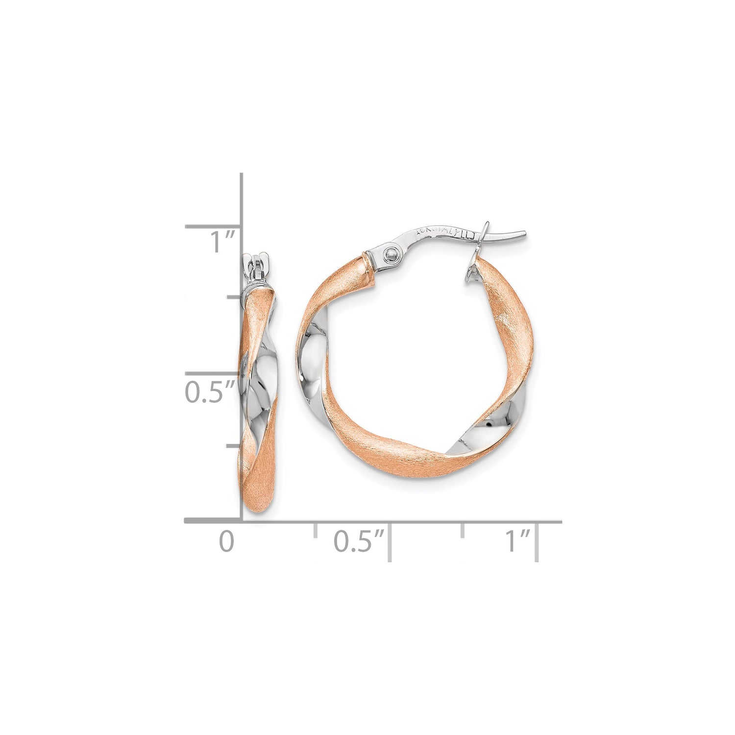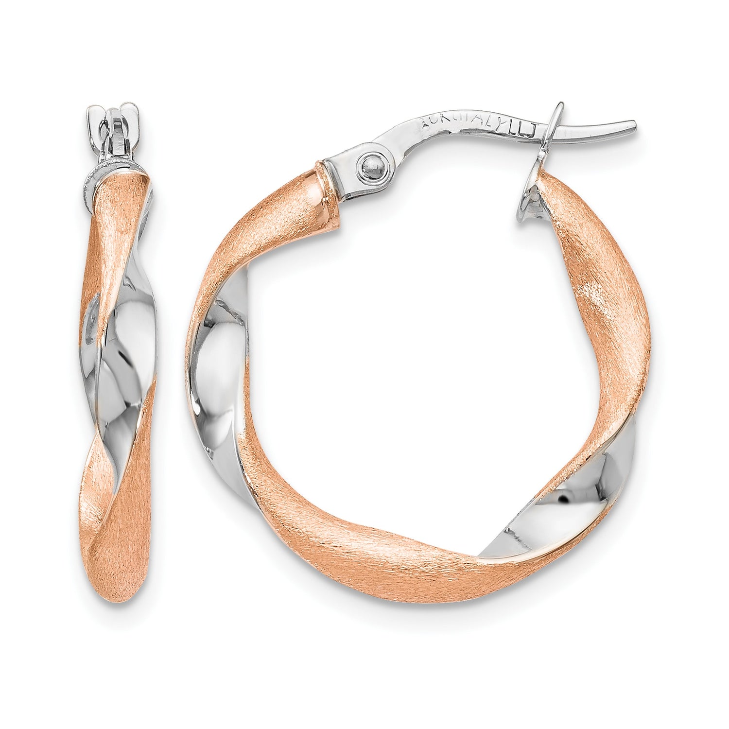 10k Yellow Gold Twisted Hoop Earrings, Rhodium Two-Tone Satin and Polished Finish, Lightweight Design