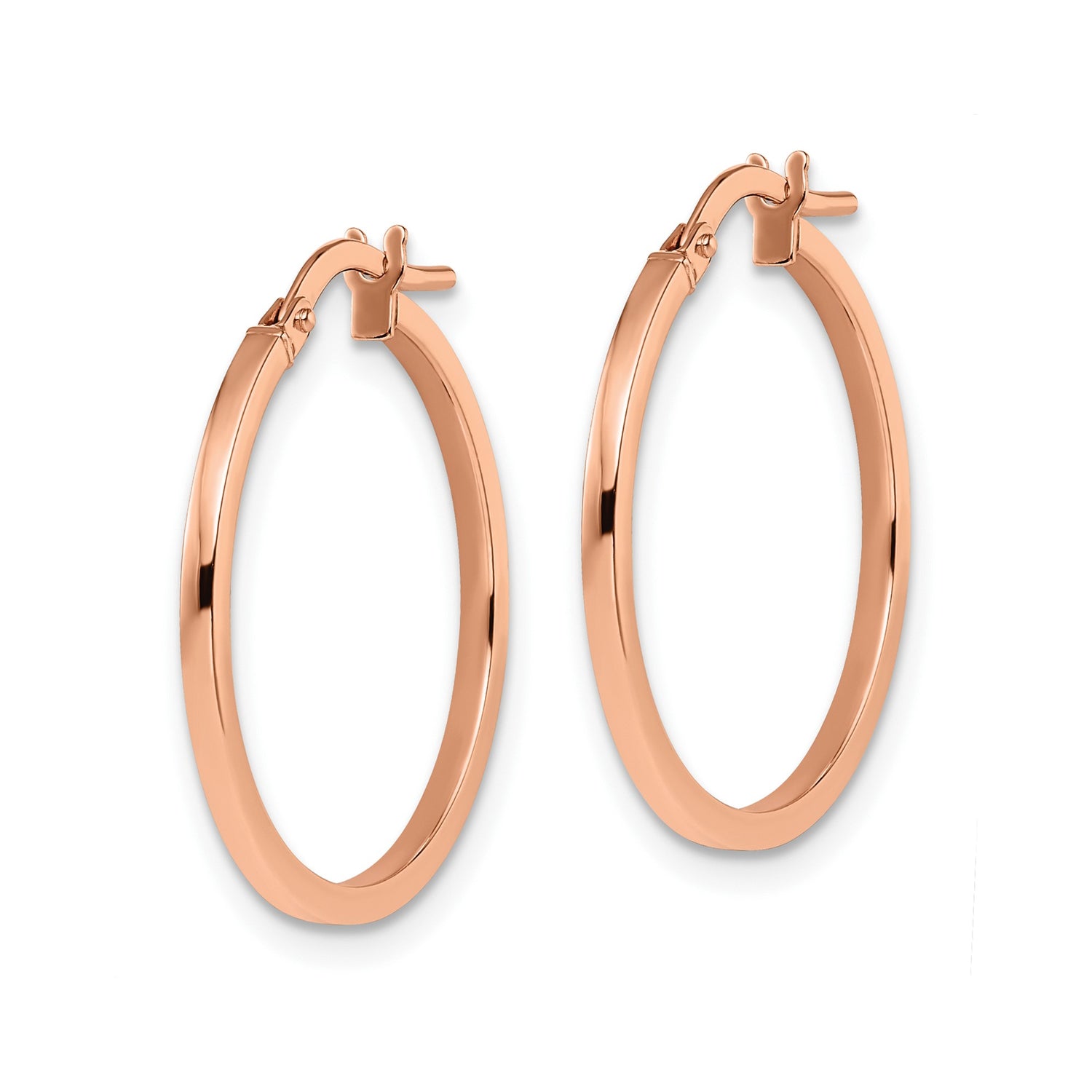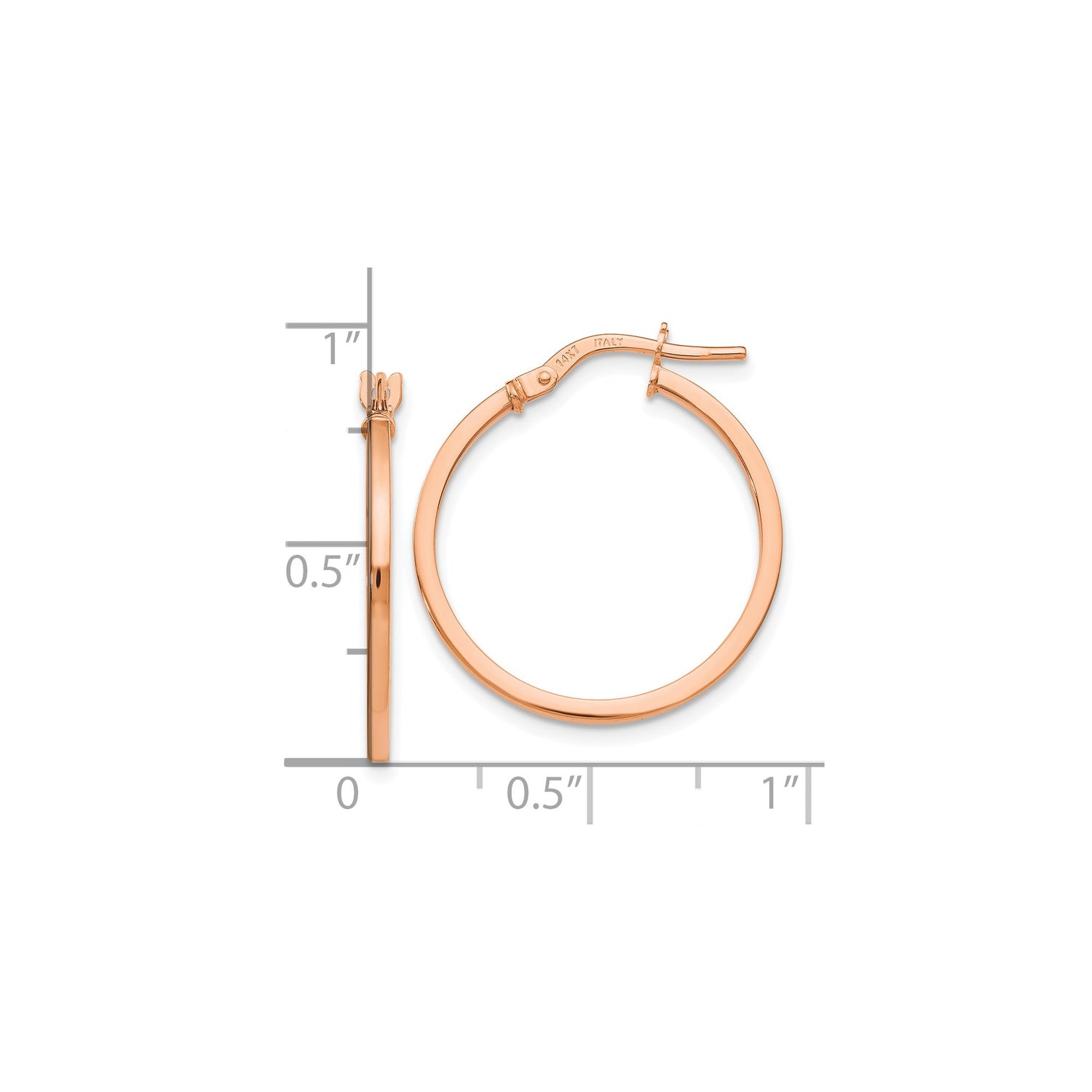 14k Rose Gold Hoop Earrings, Medium Round Polished Italian Made Lightweight Design