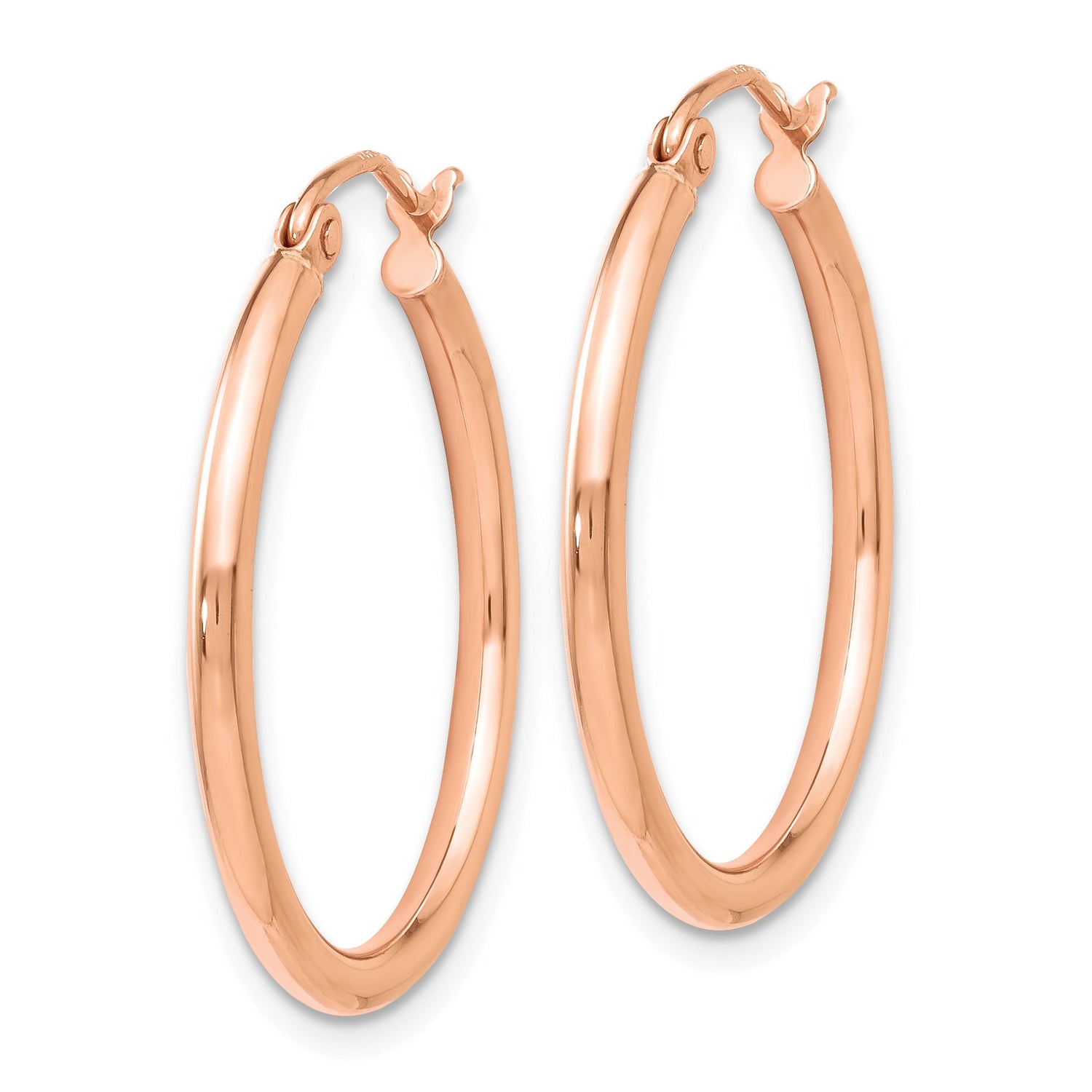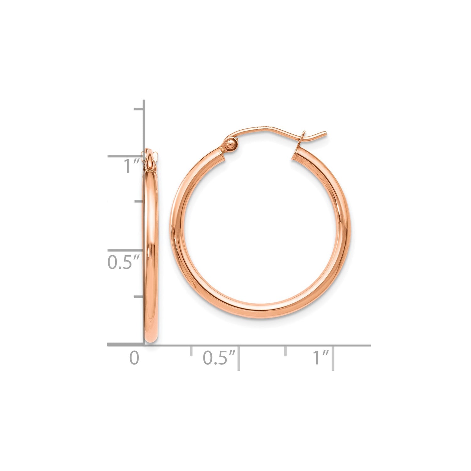 14k Rose Gold Hoop Earrings, Polished Finish Minimalist Round Hoops, Latch Back Closure