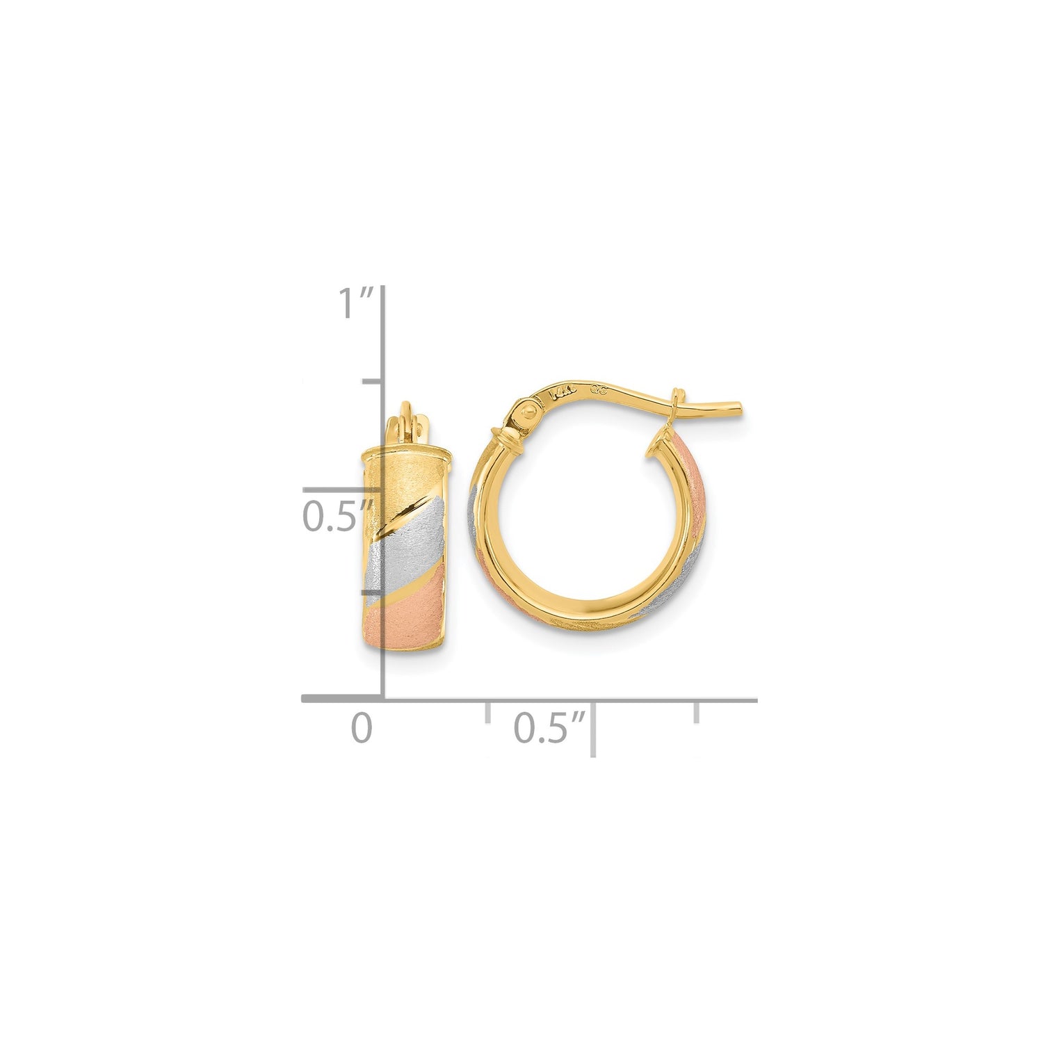 14k Tri-Color Gold Hoop Earrings, Brushed and Polished Finish, Timeless Style for Women