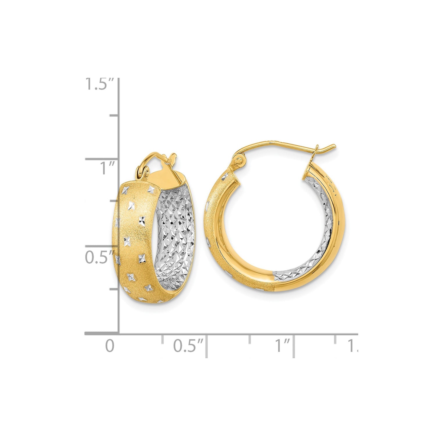 14k Two Tone Gold Hoop Earrings with Diamond Cut Star Pattern and Textured Finish