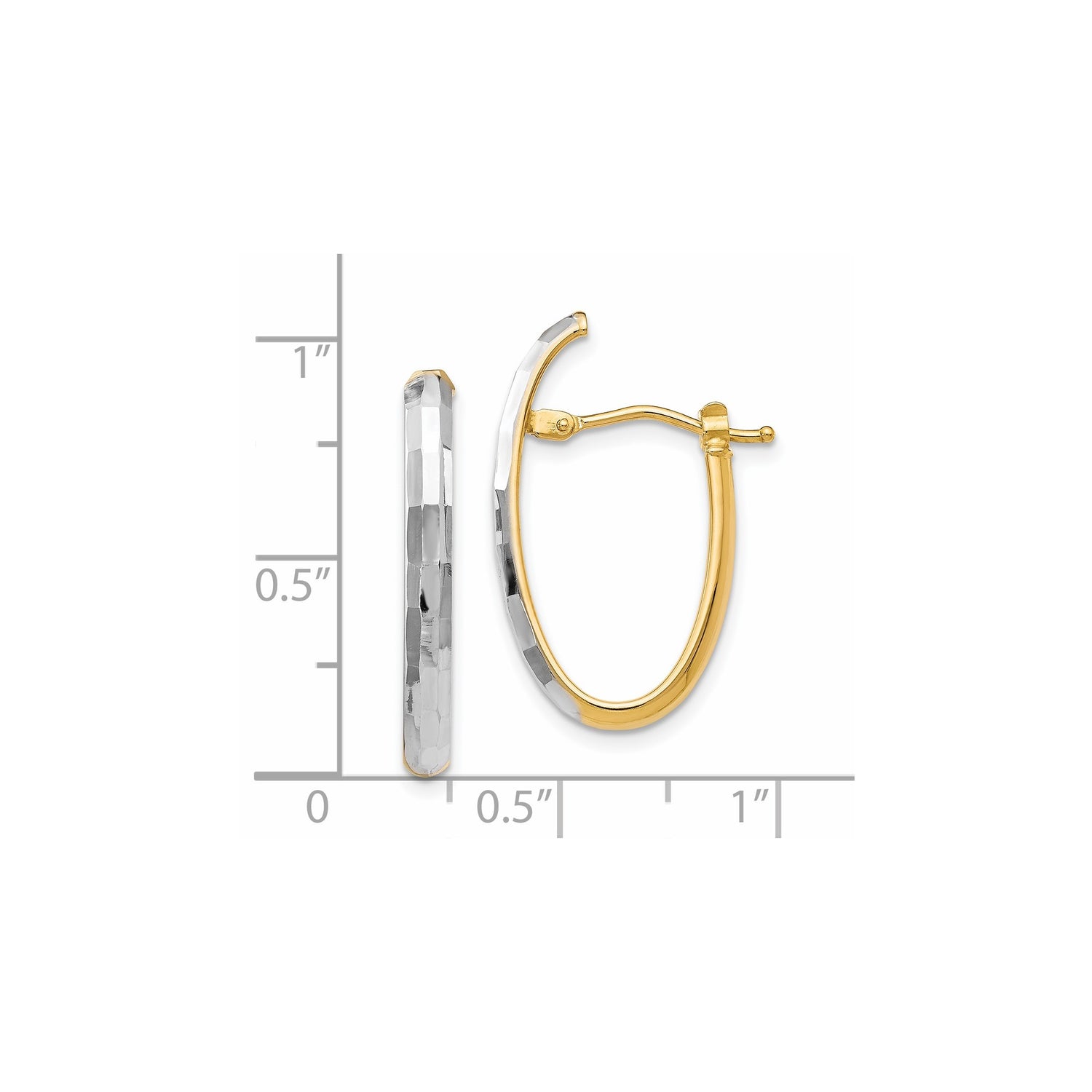 14k Two-Tone Gold Oval Hoop Earrings with Rhodium Accents and Diamond-Cut Texture