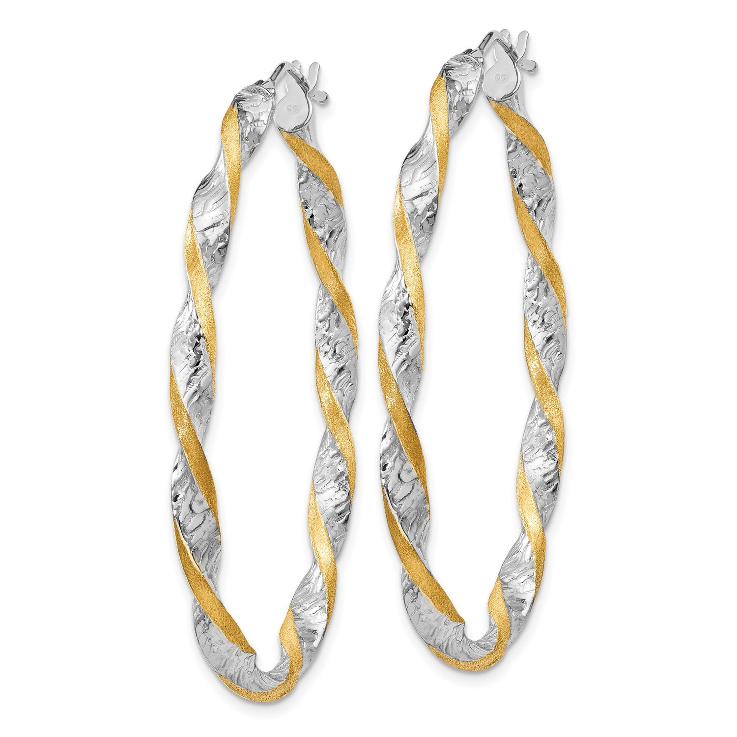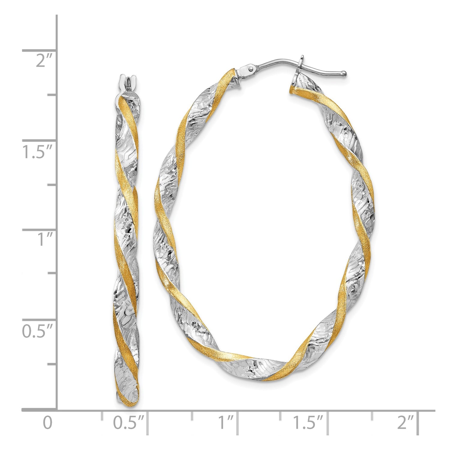 14k White and Yellow Gold Oval Hoop Earrings, Twisted Two-Tone Textured Design