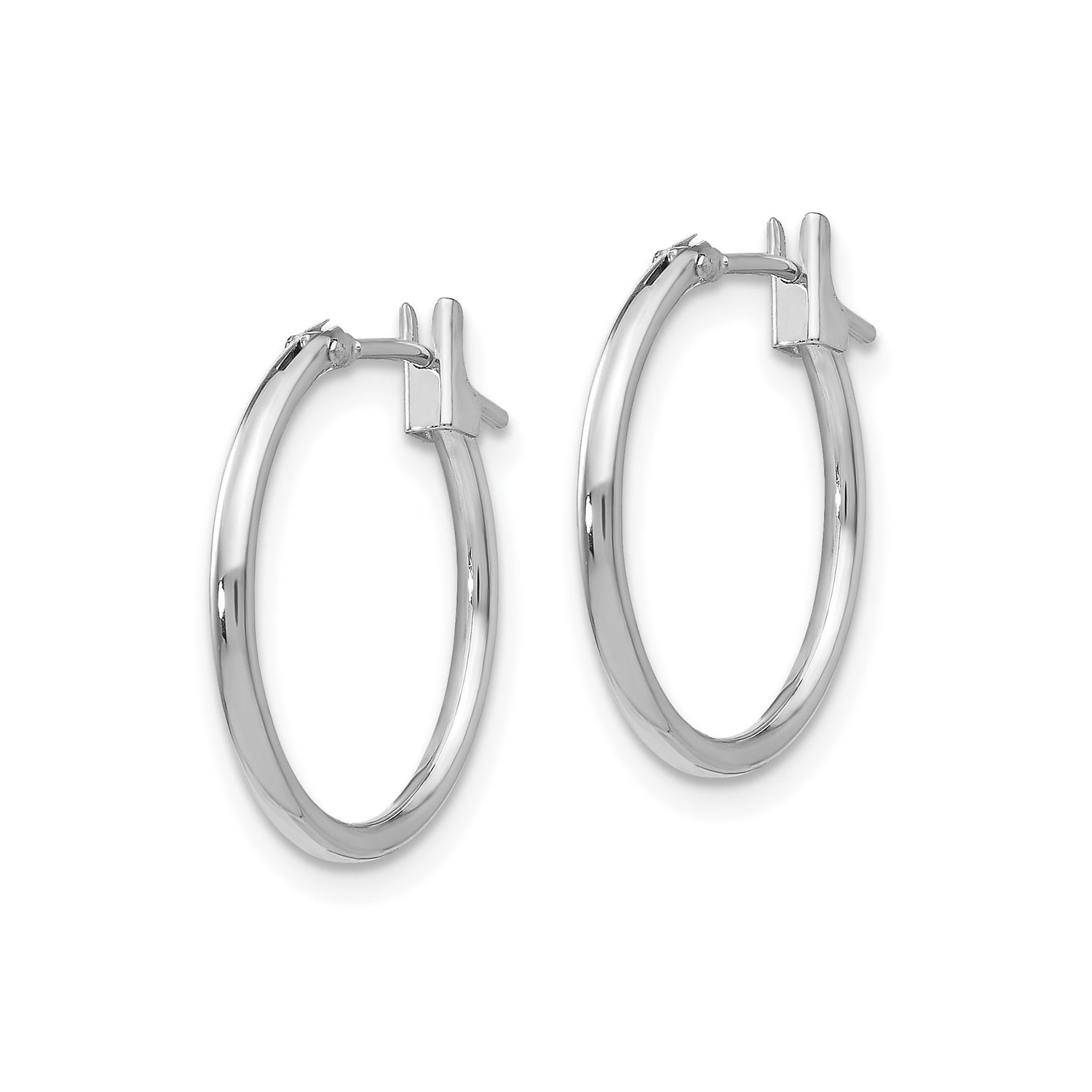 14k White Gold Hoop Earrings, Medium Round Polished Minimalist Design, Unisex Everyday Style