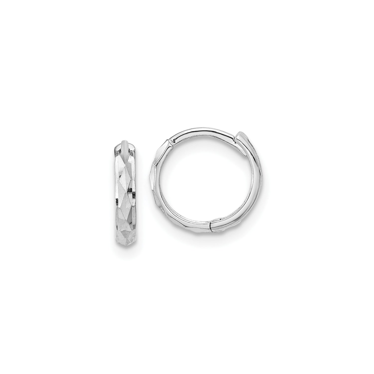 14k White Gold Hoop Earrings with Faceted Diamond Cut Design, Small Lightweight Style for Women