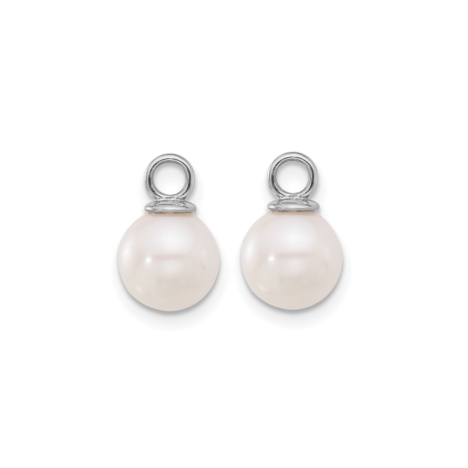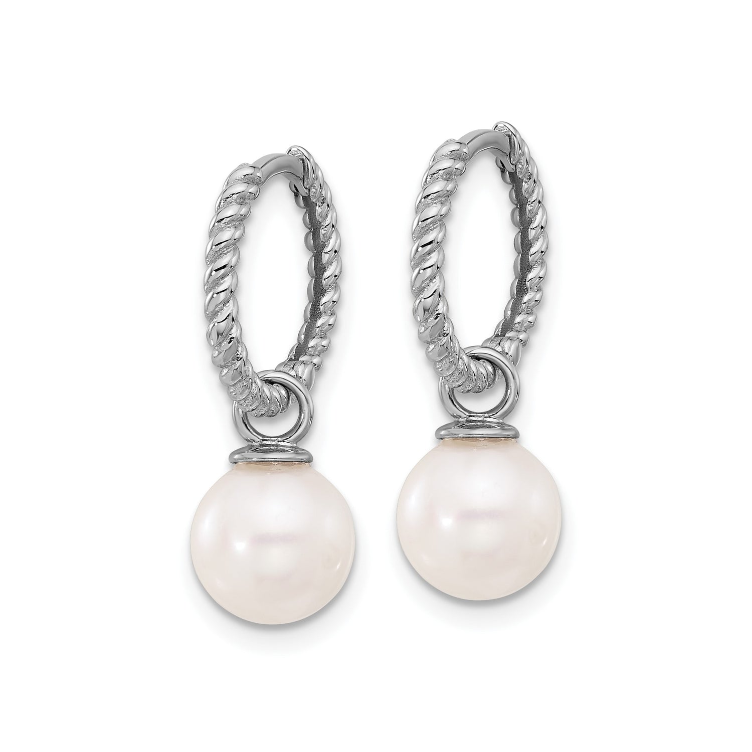 14k White Gold Hoop Earrings with Interchangeable Pearl Drops, Twisted Rope Design