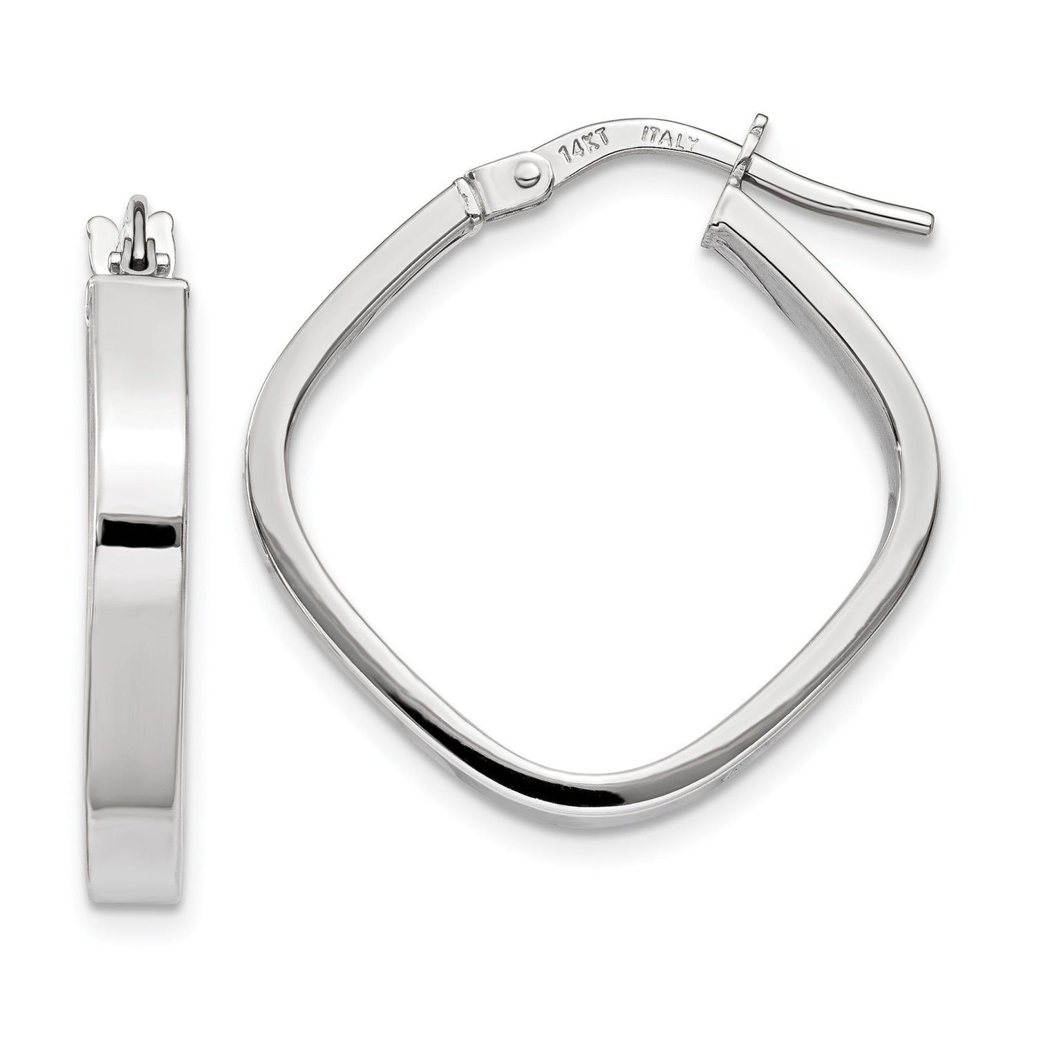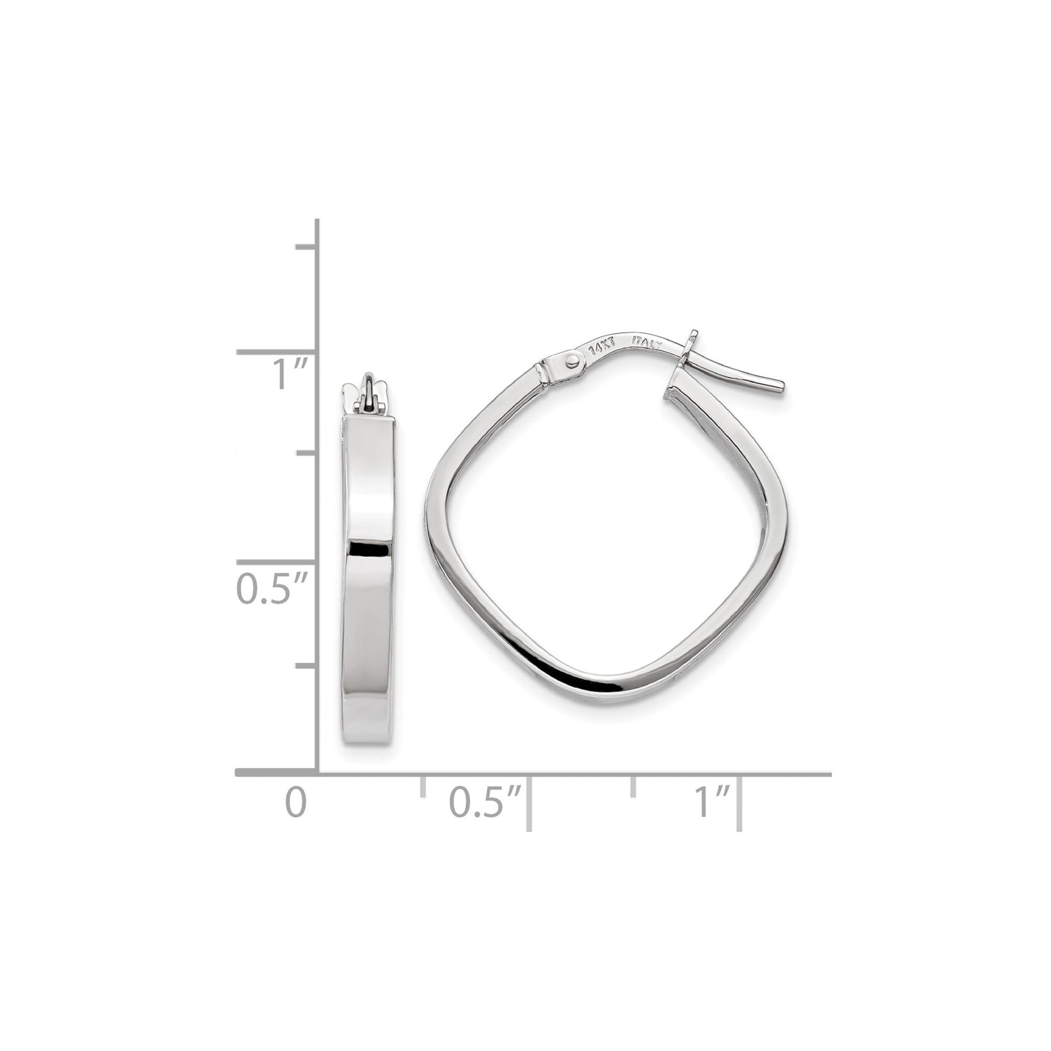 14k White Gold Square Hoop Earrings, Italian Made Lightweight Geometric Style