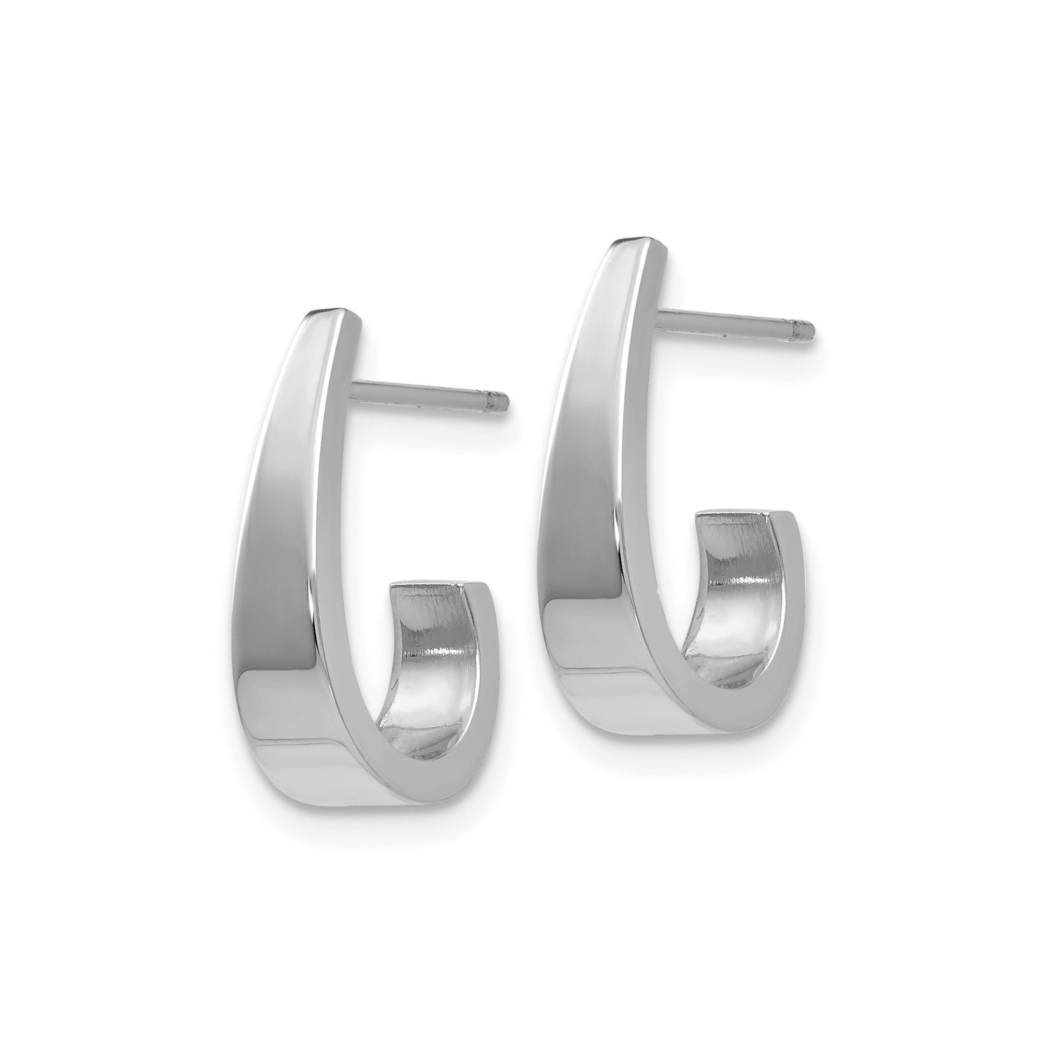 14k White Gold Tapered Hoop Earrings, Polished Sleek J Hoop Style, Modern Minimal Design for Women
